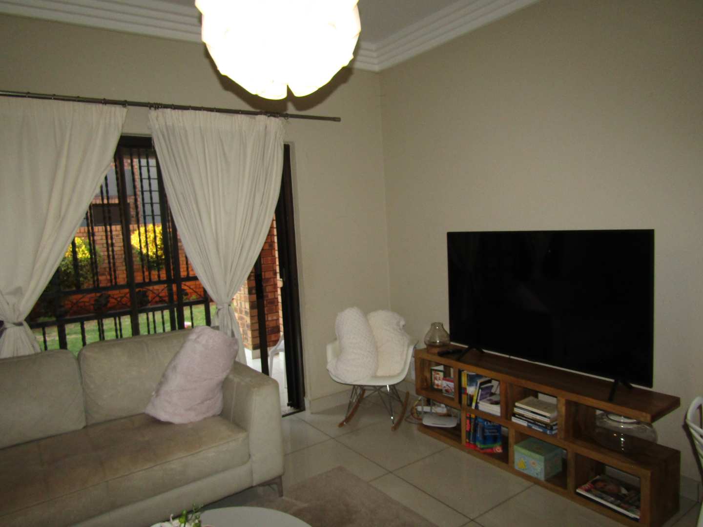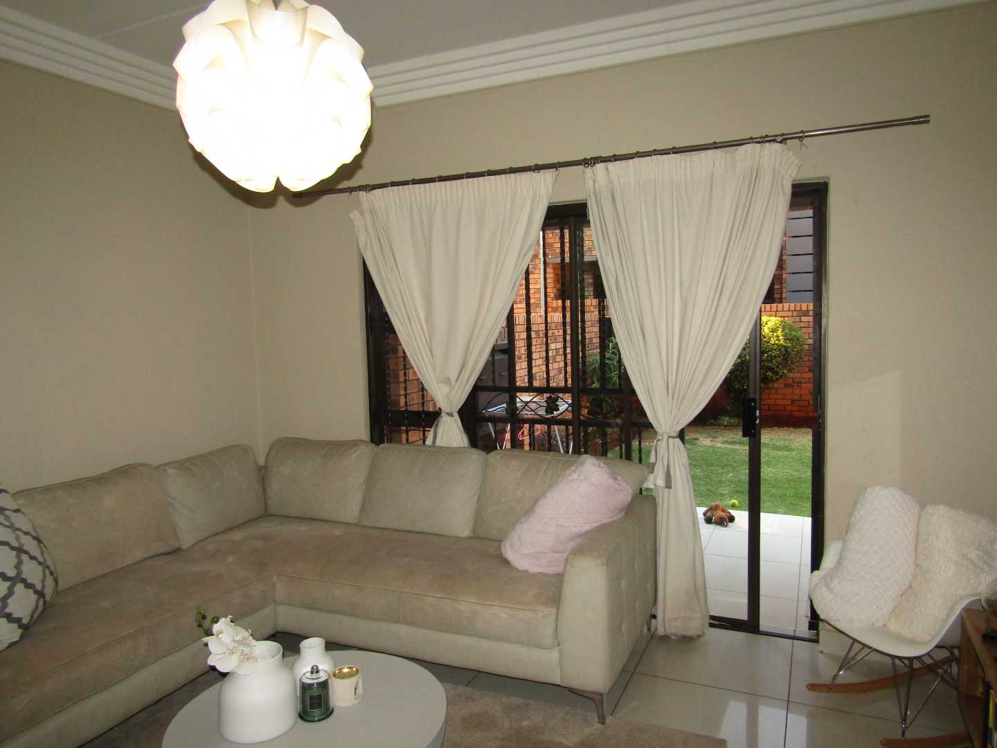 From the kitchen, step into the large, modern living area that invites relaxation and entertainment. The space is enhanced by a sliding door that opens onto your private patio. Here, you’ll find a built-in braai perfect for outdoor dining and entertaining. For peace of mind, security gates and bars are installed, ensuring an extra layer of safety. The beautifully landscaped garden offers a serene escape, allowing you to enjoy the outdoors from the comfort of your home.