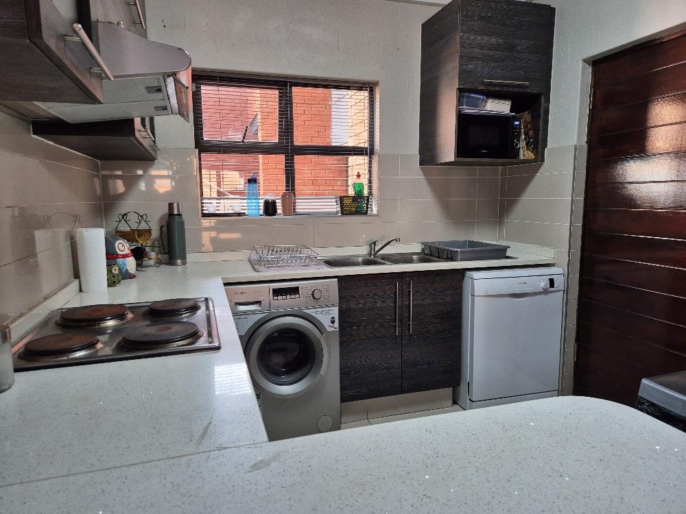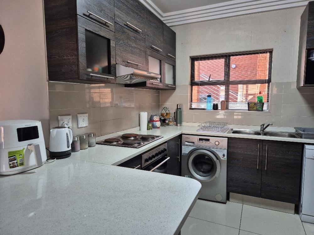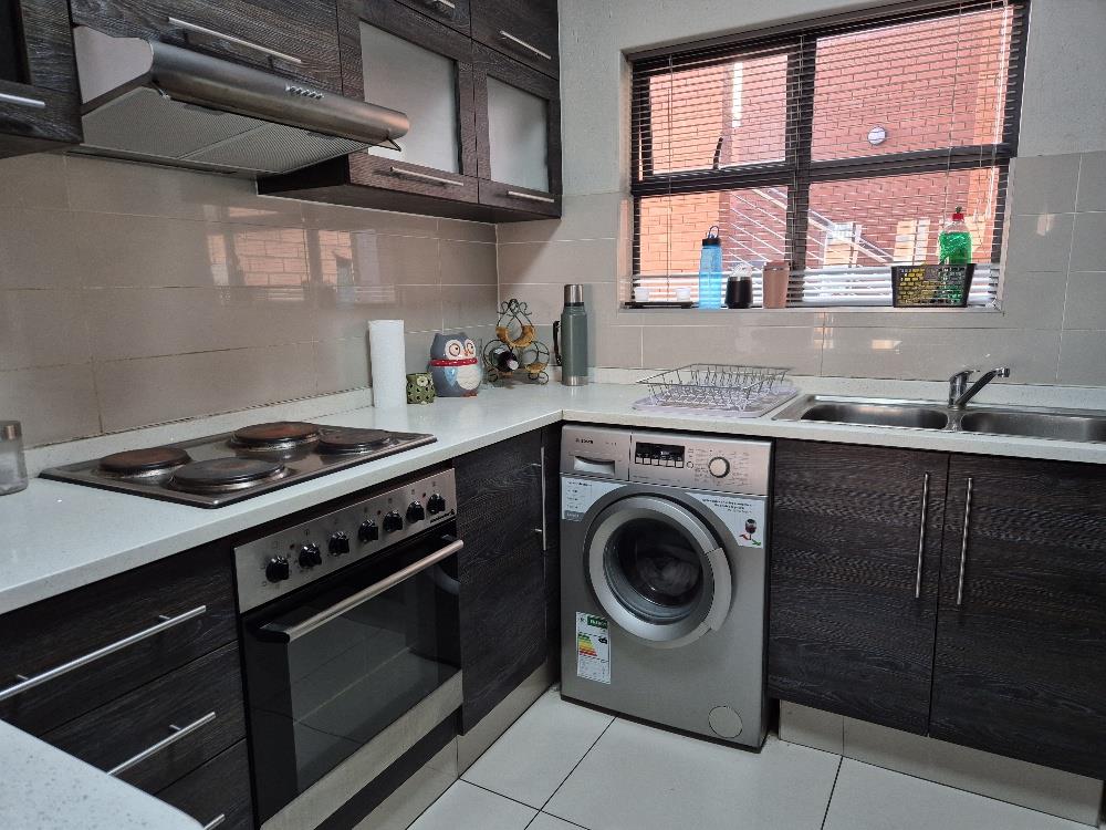Step into a modern kitchen that is both stylish and functional, featuring built-in cupboards, elegant granite countertops, and a three-piece stove. With ample space for a washing machine, dishwasher, and refrigerator, this kitchen is designed to make everyday living effortless.