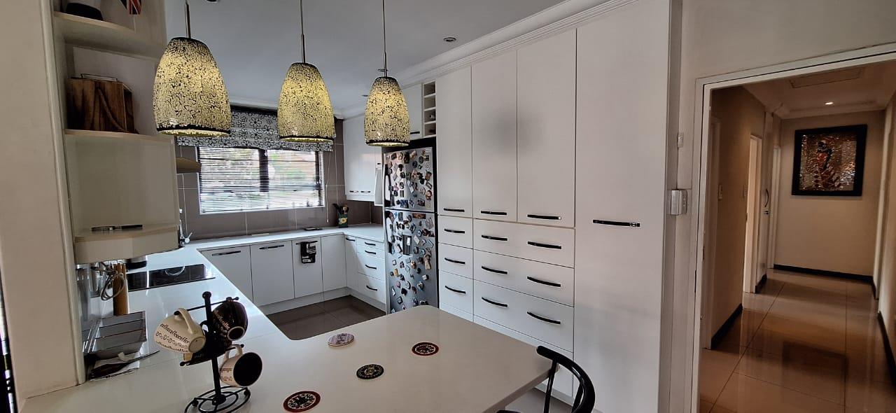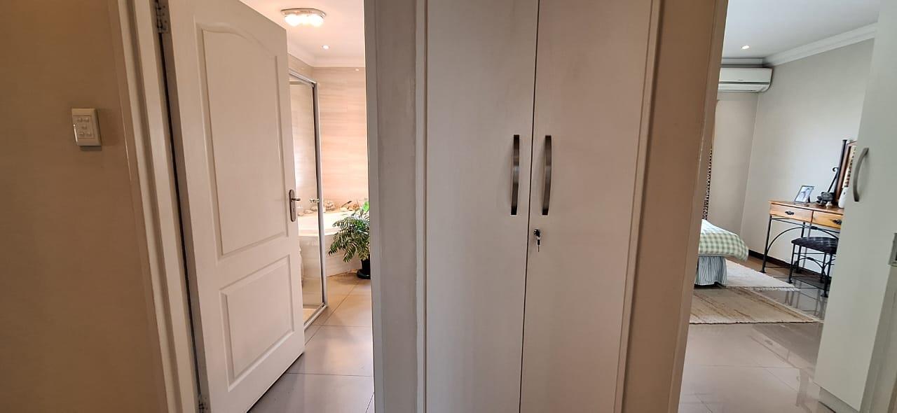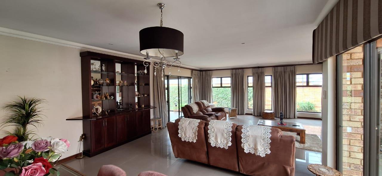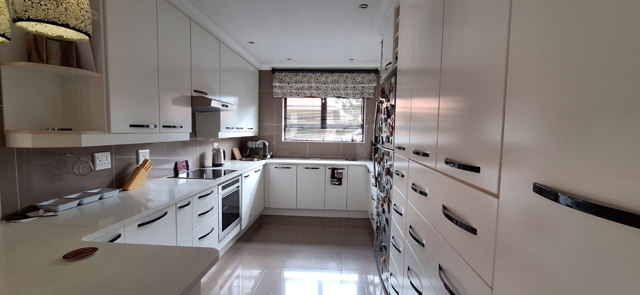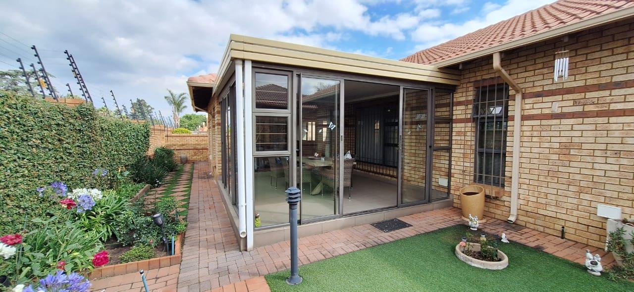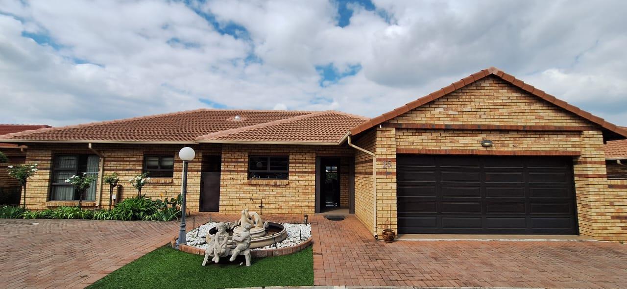 This solidly built face brick cluster exudes timeless elegance with its bespoke finishes and generous entertainment spaces. Upon entering through the secure double-door entrance, you’re greeted by an airy and light-filled banquet-sized dining room that seamlessly flows into a double volume lounge-family room. All bedrooms are fully tiled, except for the luxurious master suite, which features a spacious walk-in closet. A standout feature is the double-volume north-facing sunroom, perfect for soaking up the sun year-round.