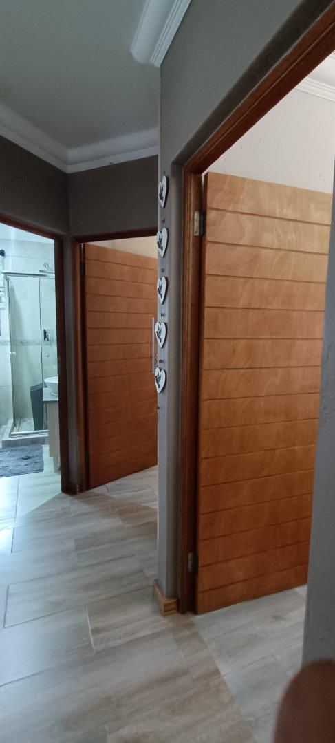 The main bedroom is a true retreat, featuring its own beautiful bathroom and modern built-in cupboards with ample storage. The two additional bedrooms are spacious and share a well-appointed bathroom.