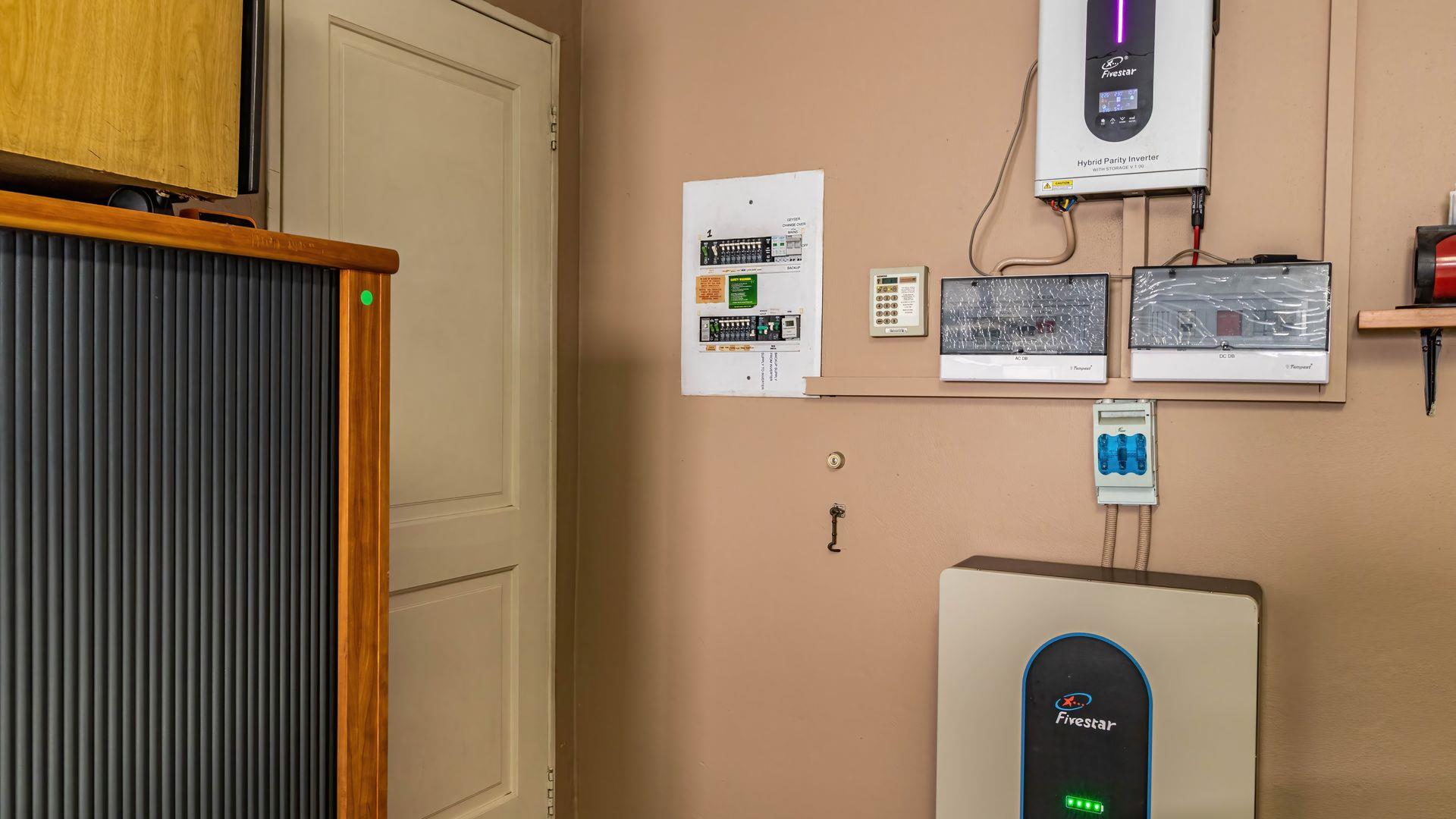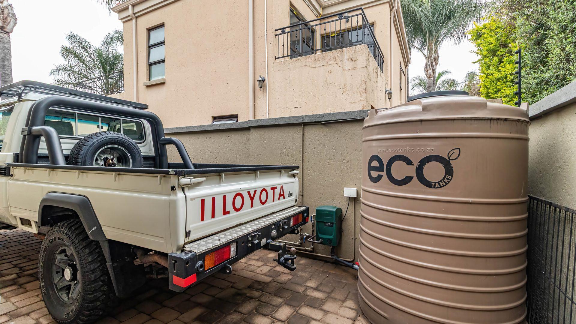 Practicality meets luxury with a double garage offering direct access into the home, along with two additional open parking spaces for a trailer or extra vehicle behind a secure gate and two more open parking spots in front of the garages. A single staff quarter is also available, though it lacks a shower.