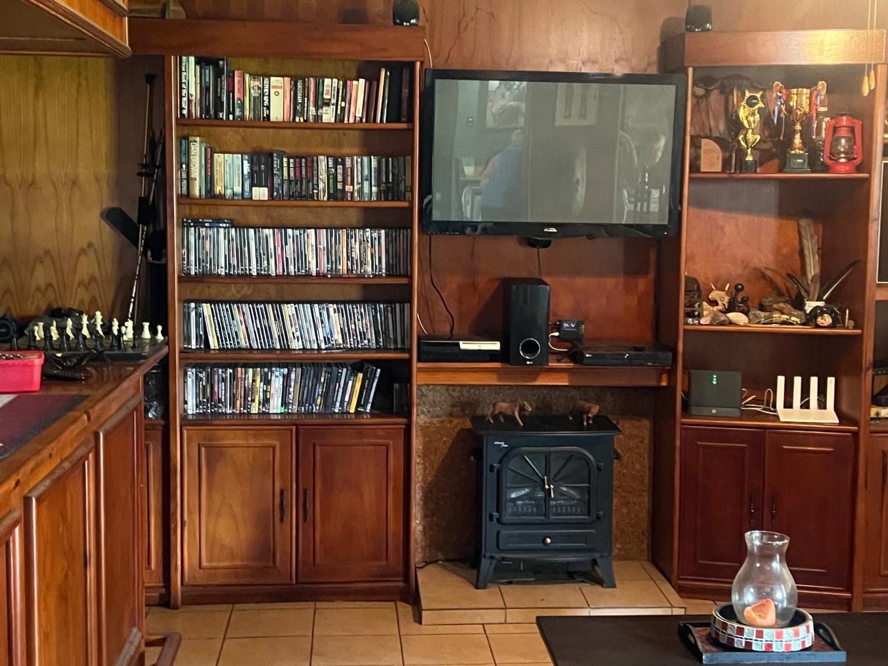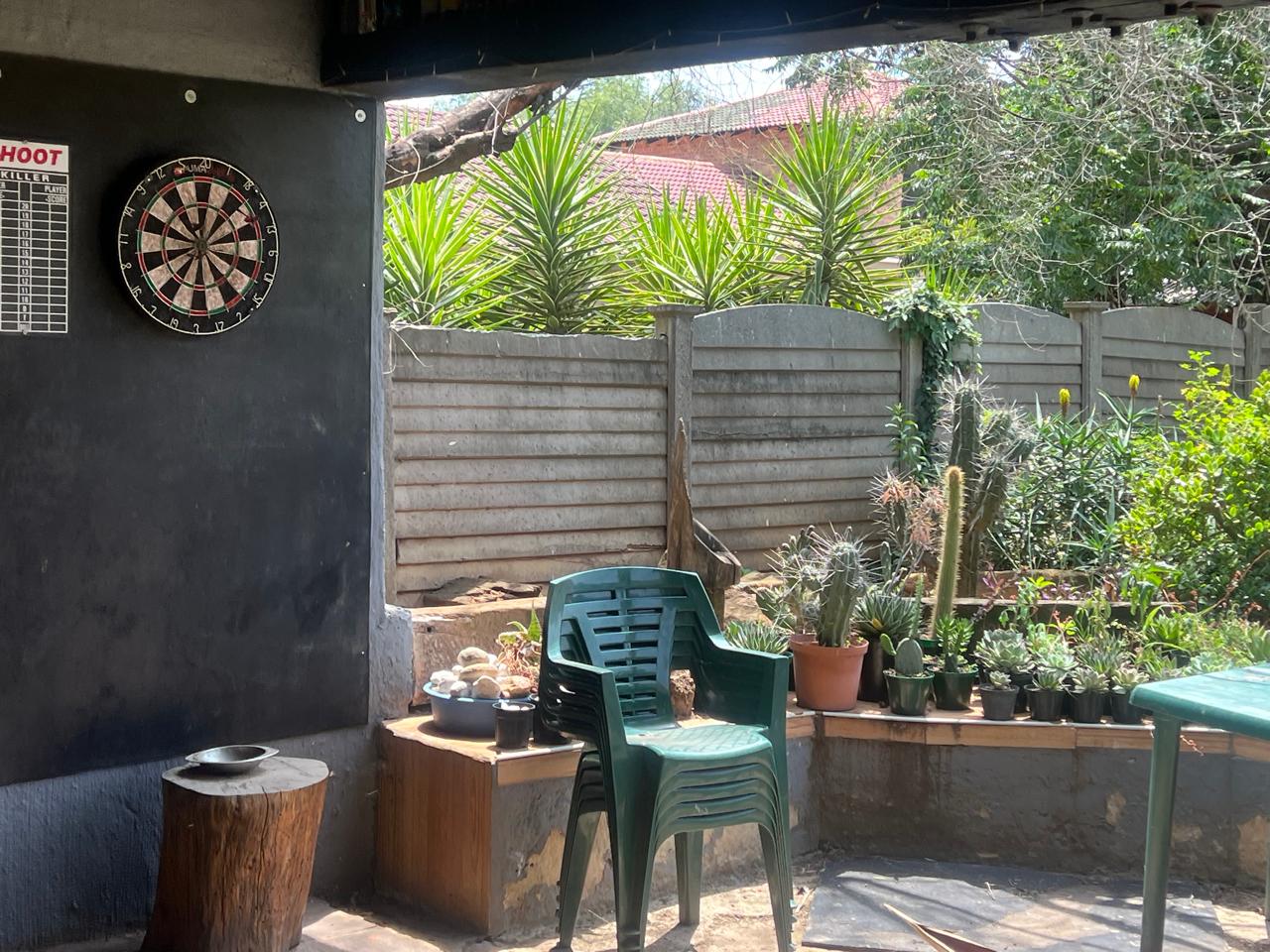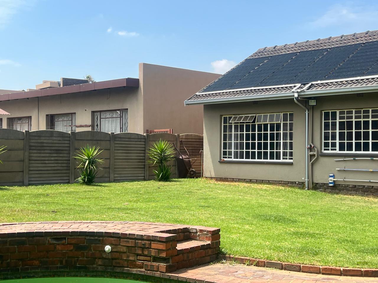 Lovely street and home with street appeal and so much more. Entrance hall, dining room, lounge with extra area with built-in wooden bar. Spacious kitchen with room for your appliances. 3 well-sized bedrooms and 2 bathrooms (MES). Covered patio and under-cover Entertainment area with built-in braai, all overlooking a stunning pool and garden. Double garage and automated gate. Come and add your touch of love, and make it your home sweet home.