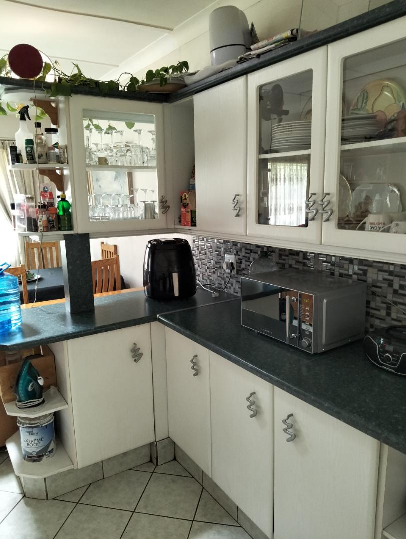 The entrance hall leads into a combined dining and kitchen area, ideal for family meals and gatherings. The double-sized lounge invites you to unwind with ample space for entertaining or relaxing with your favorite binge-worthy series. This home features tiled floors throughout, ensuring low maintenance and easy cleaning includes three generously sized bedrooms, each equipped with built-in cupboards and large windows that flood the rooms with natural light. The main bedroom boasts an extension, offering extra space and a private en-suite bathroom for your comfort.