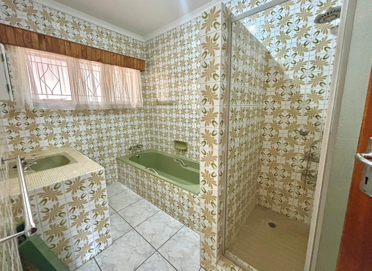 The kitchen is a chef’s dream, featuring a gas stove—an essential during load shedding—along with ample cabinetry and generous countertops for effortless meal preparation. A charming breakfast nook comfortably seats six, perfect for casual family meals. The separate scullery includes space for both a washing machine and dishwasher and opens out to a neat back courtyard.