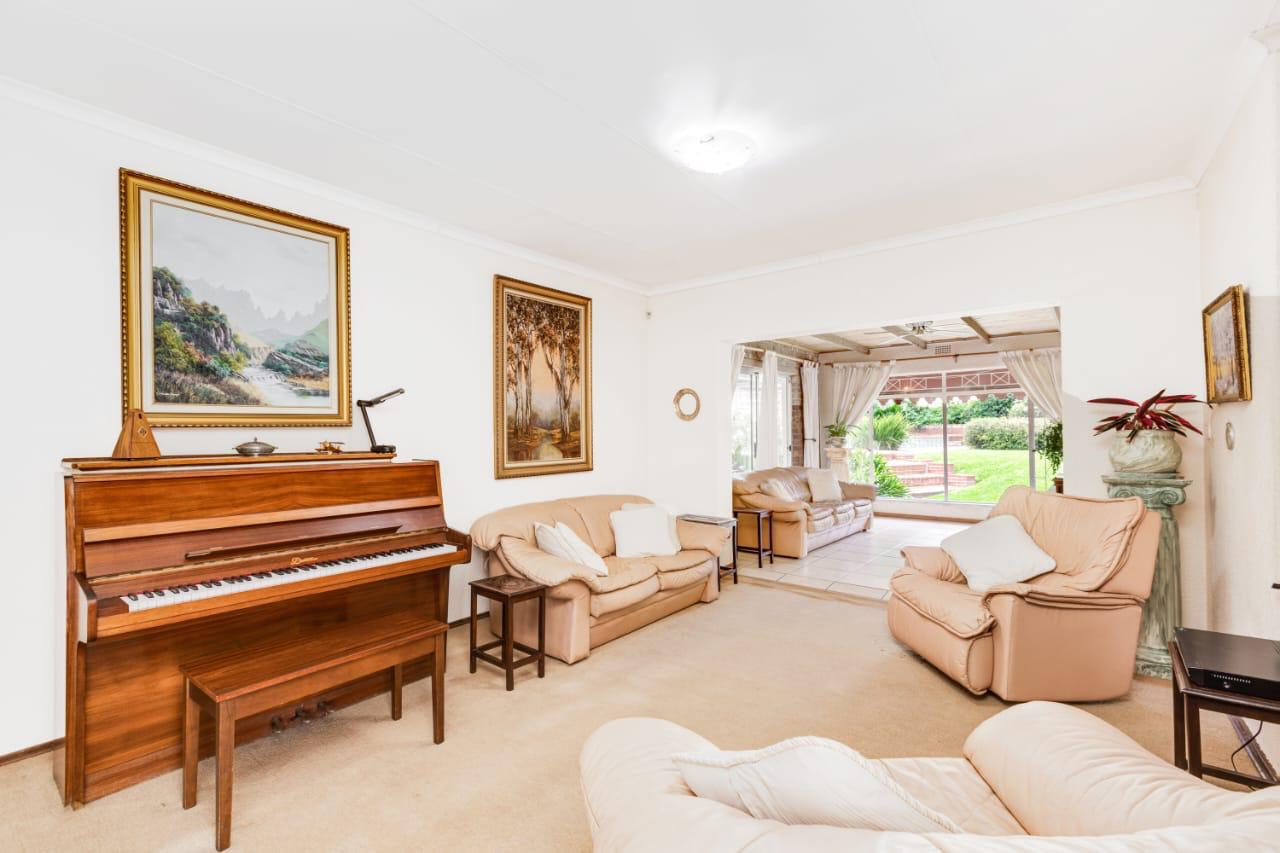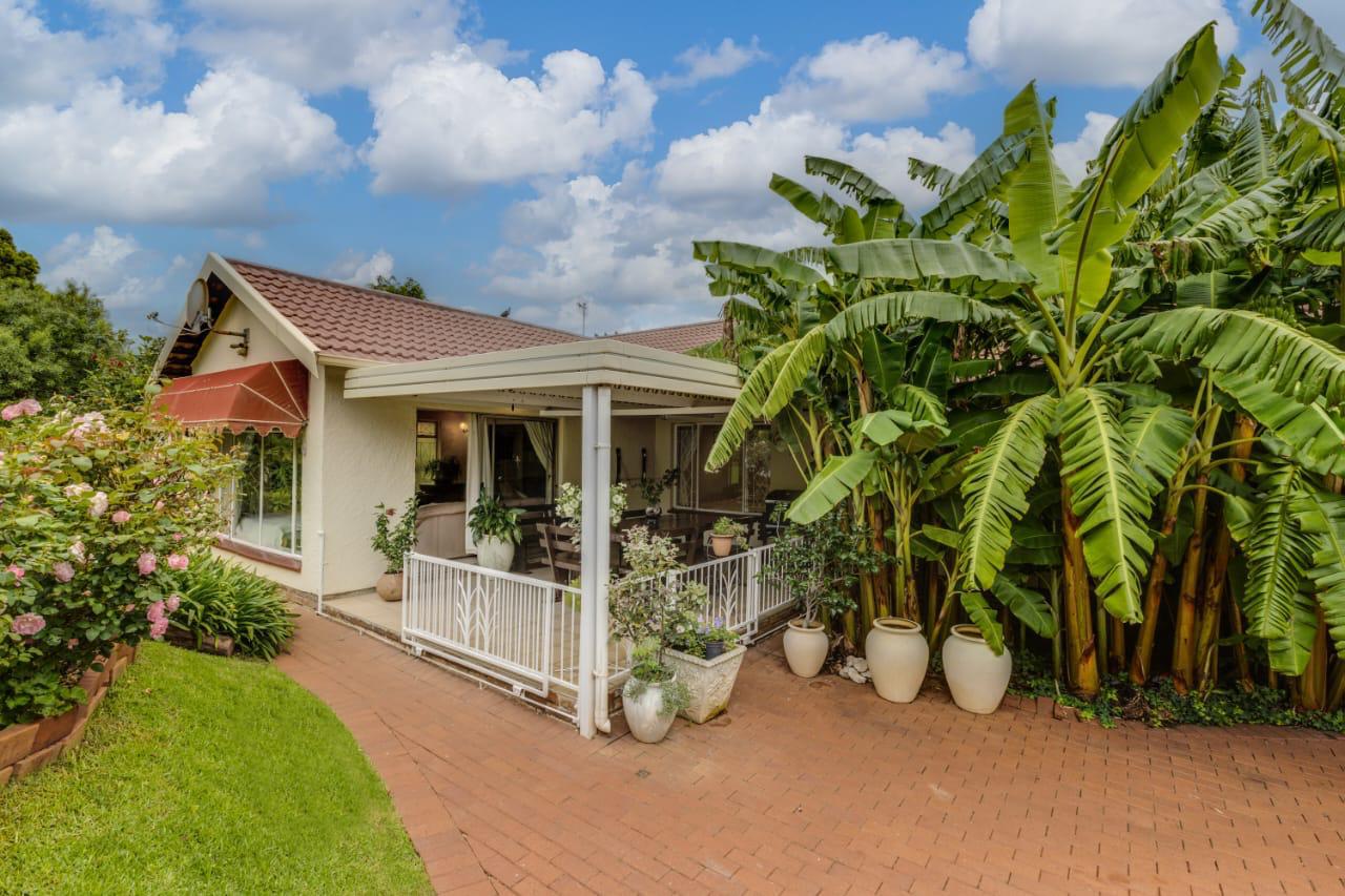 The kitchen flows into an open-plan dining and lounge area, creating a warm and welcoming living space that’s ideal for everyday family life and entertaining guests. Outside, a spacious patio and braai area overlook a sparkling pool, offering the perfect setting for weekend get togethers and summer relaxation.