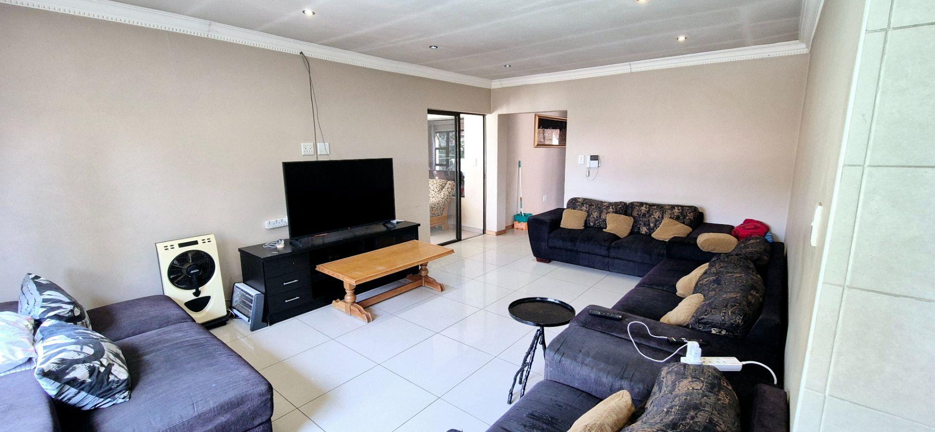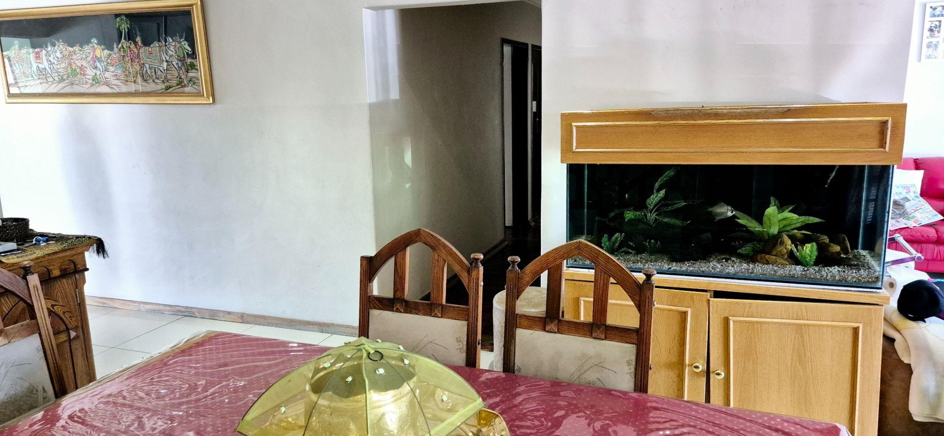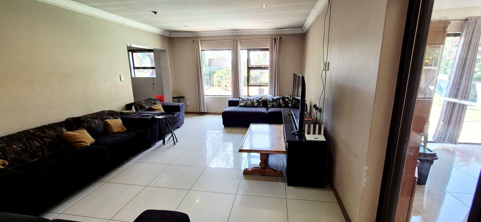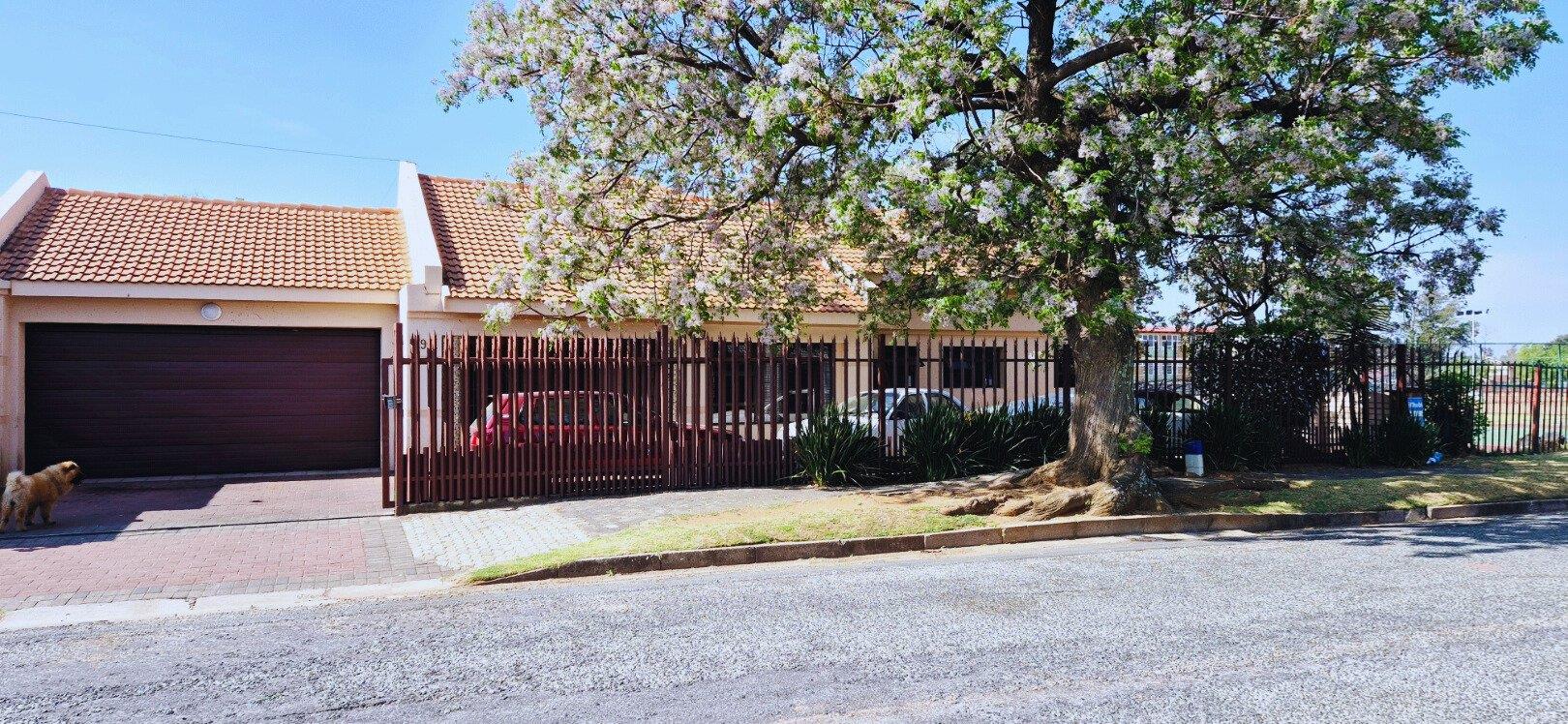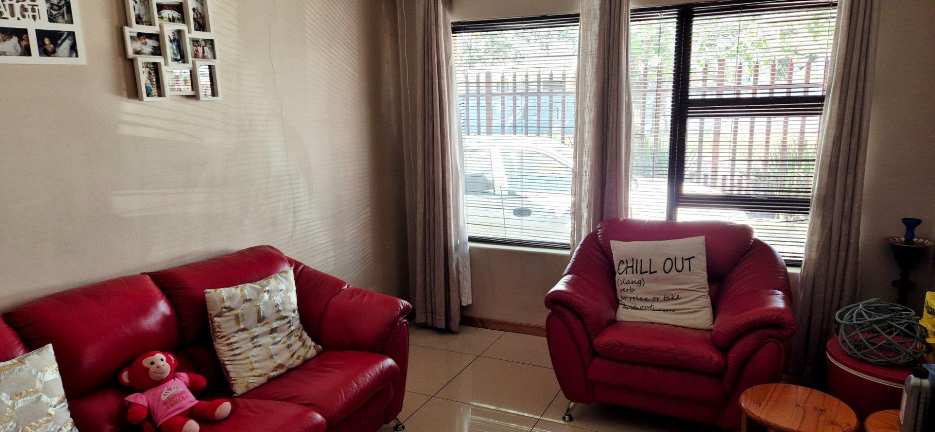 The home features three generously sized bedrooms, each equipped with built-in cupboards. The master bedroom boasts an ensuite bathroom, providing a private retreat for relaxation. Additionally, a full family bathroom, complete with a bath and shower, ensures everyday ease for all family members. The upmarket spacious kitchen, adorned with caesarstone countertops and a scullery, flows effortlessly into the dining and lounge areas, creating an ideal hub for family gatherings and daily living.