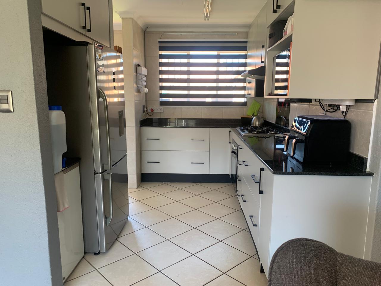 The heart of the home is the beautiful white and spacious wooden kitchen, complete with a convenient scullery. This kitchen is a chef’s delight, offering ample space for meal preparation and entertaining guests. The open-plan design seamlessly connects the kitchen to the lounge area, creating a harmonious flow throughout the living spaces.