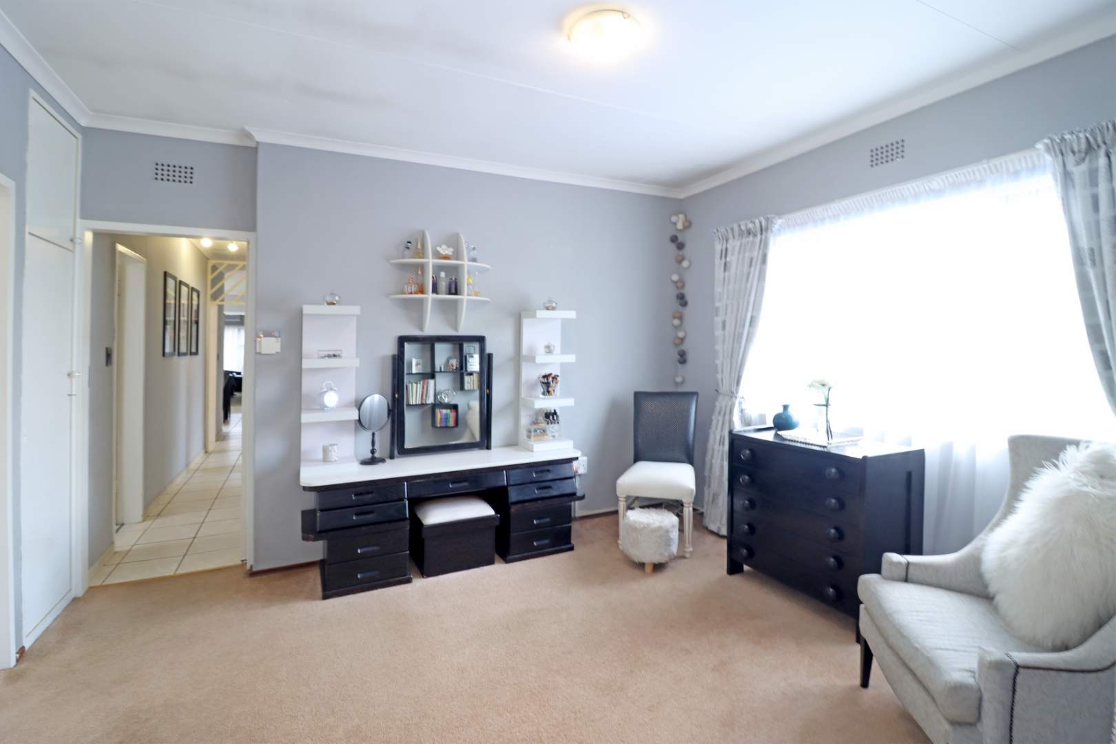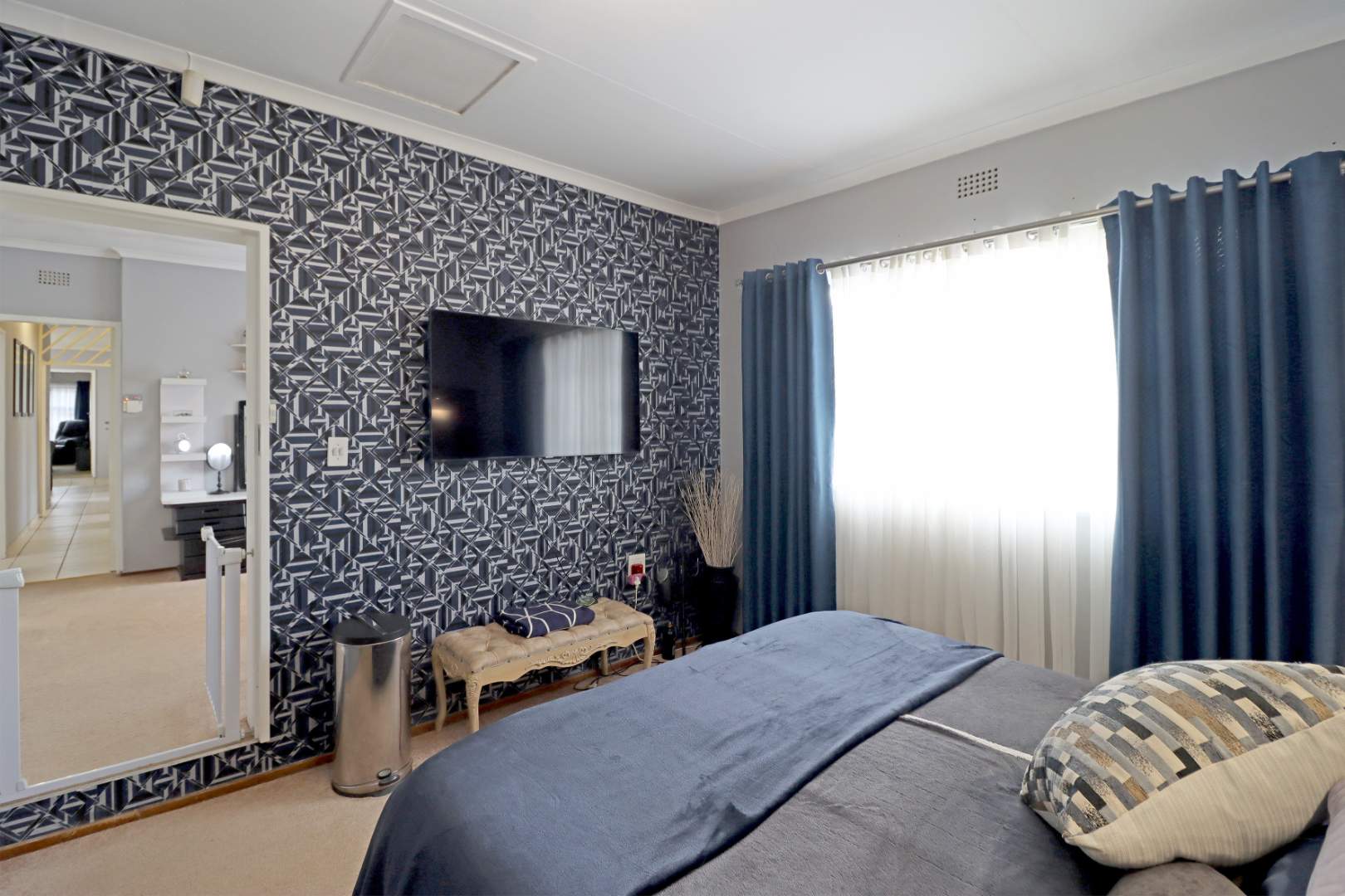 Security is paramount in this home, featuring comprehensive measures such as fitted trellidoors on all windows and doors, internal and external security beams, and multiple panic buttons throughout the residence. For those who desire extra peace of mind, a CMS response unit is available as an optional extra.