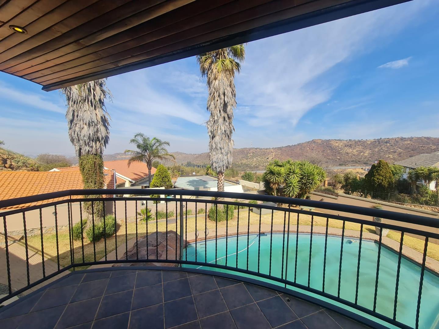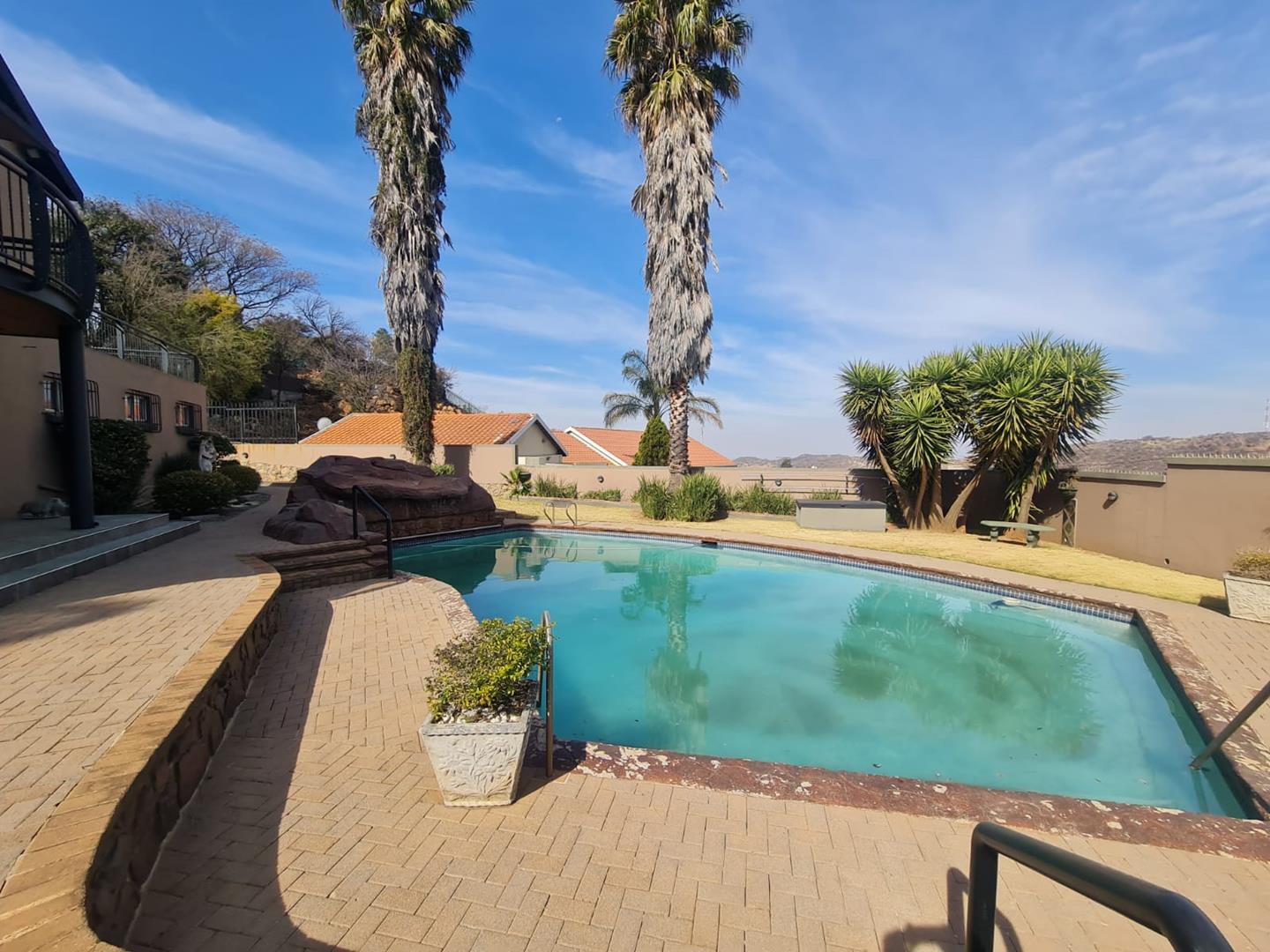 The outdoor space is perfect for relaxation and entertainment, featuring a large swimming pool with a water feature, an enclosed gazebo with a built-in braai and bar, and an outdoor fire pit. The big garden, large patios, and breathtaking views make this home a true retreat.