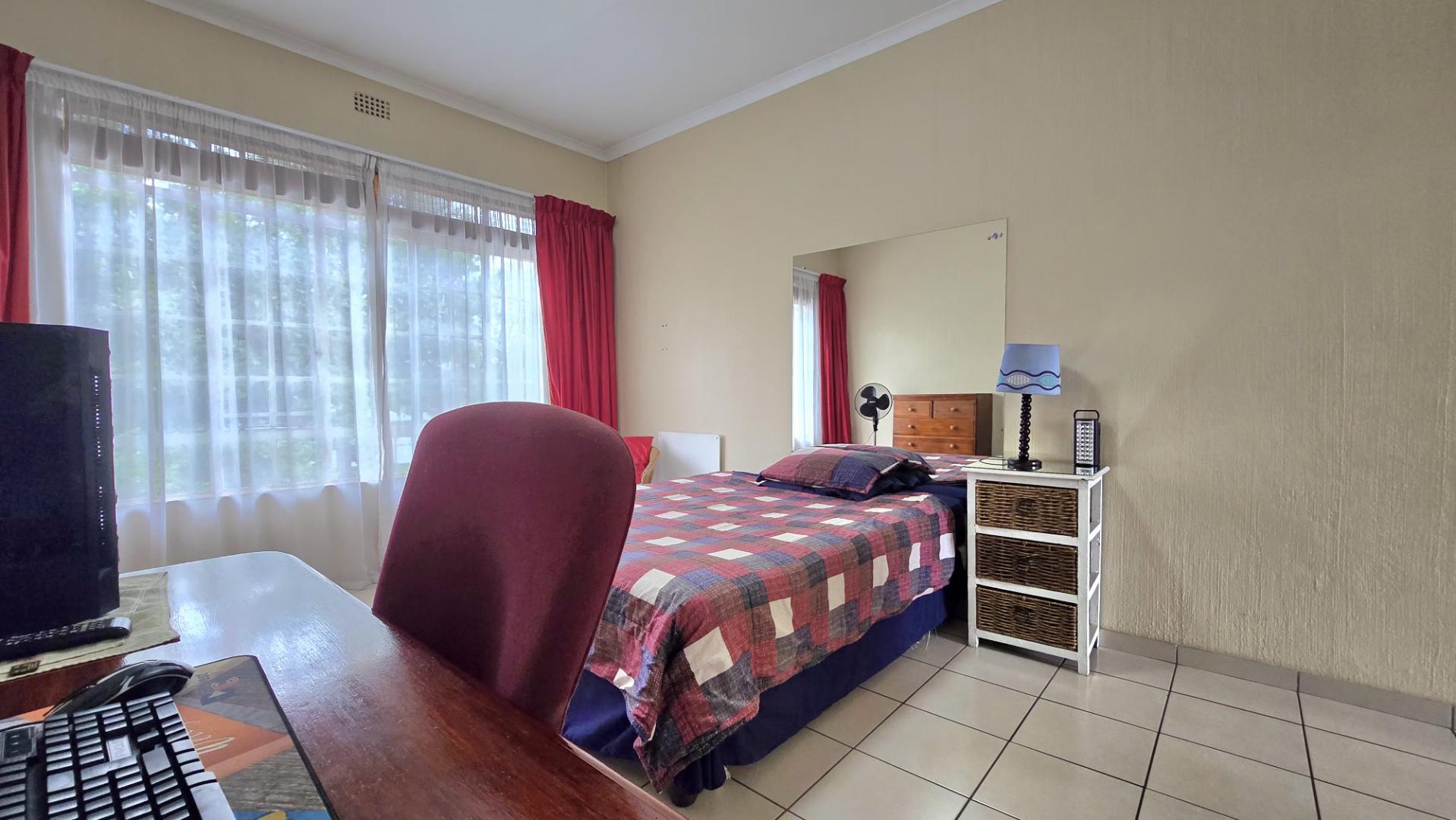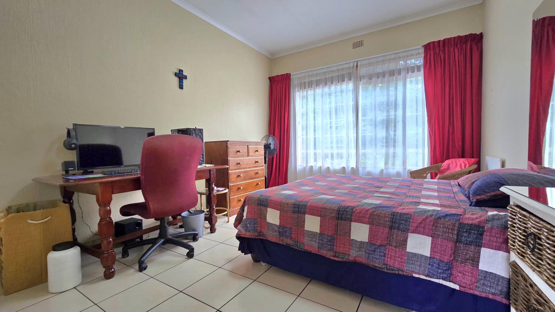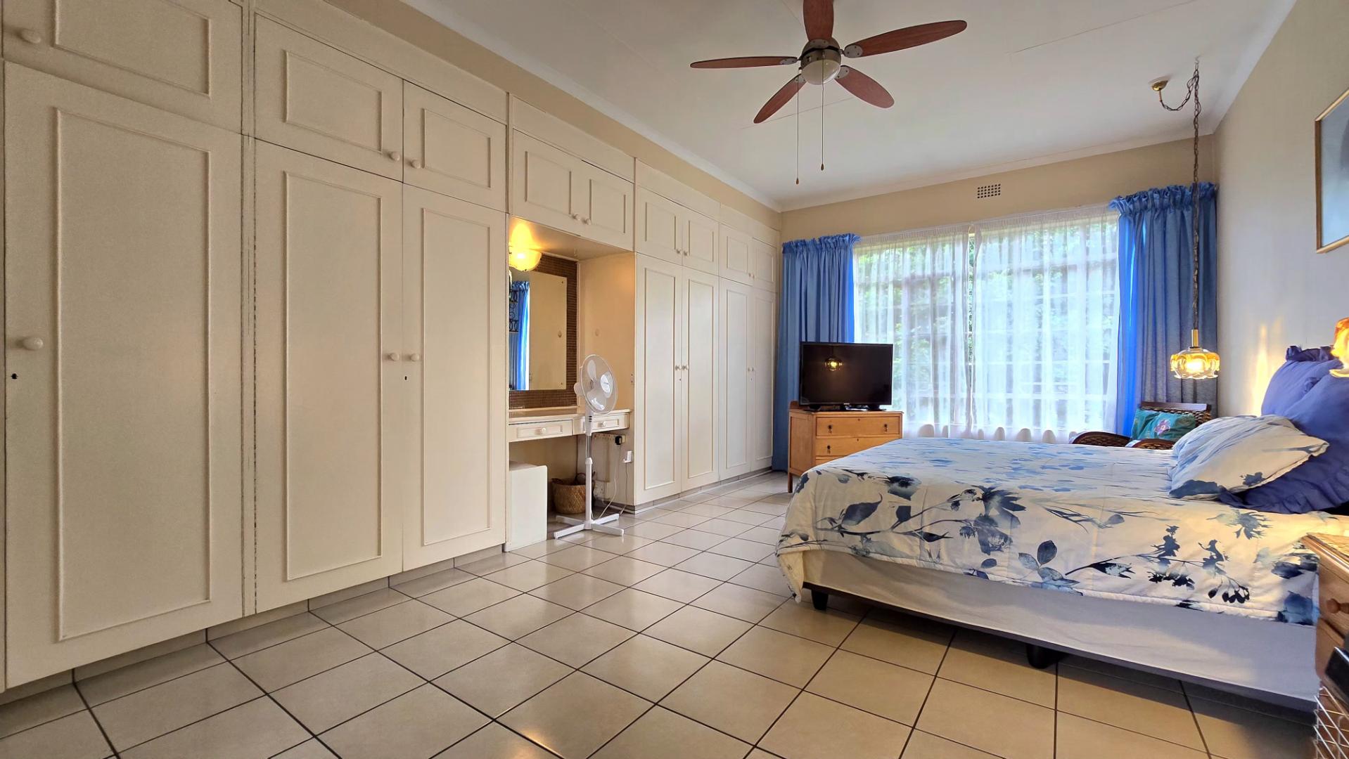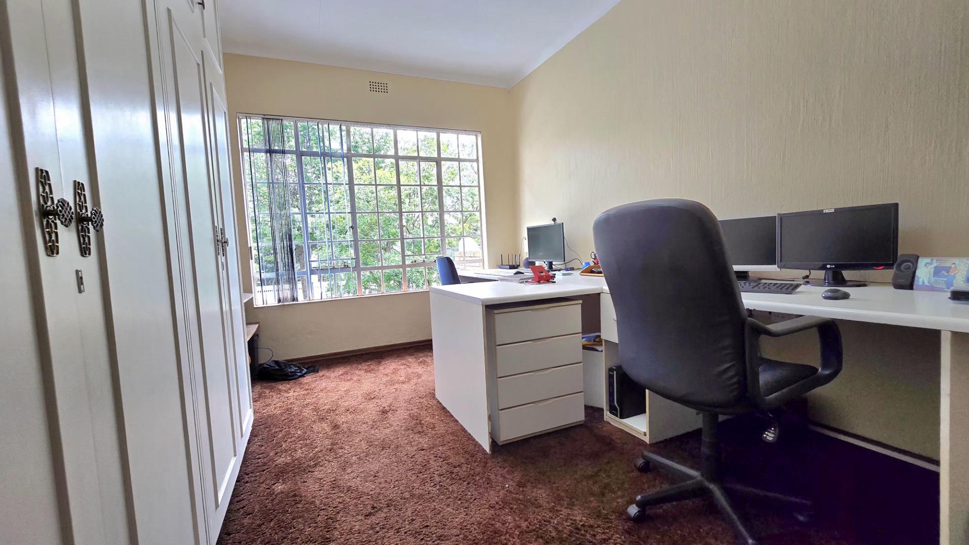 The main bedroom is a tranquil retreat, featuring tiles, built-in cupboards, a ceiling fan, blinds, and a luxurious full en-suite bathroom. The second and third bedrooms are also tiled and equipped with built-in cupboards and blinds. The fourth bedroom, currently used as a study, is carpeted and includes built-in cupboards and desks, making it an ideal home office.