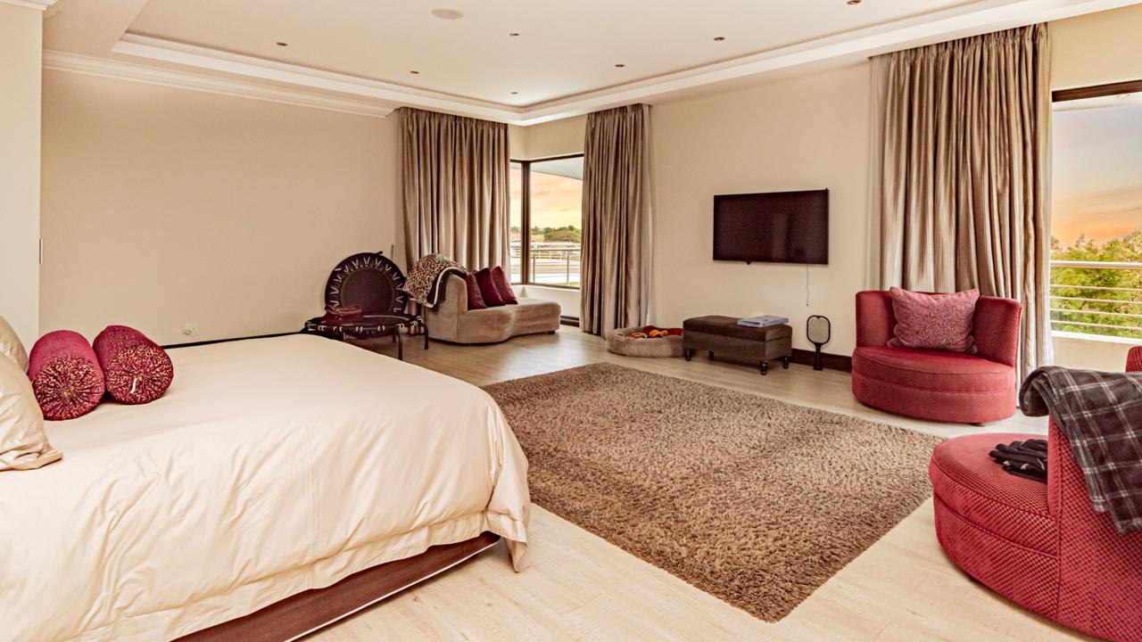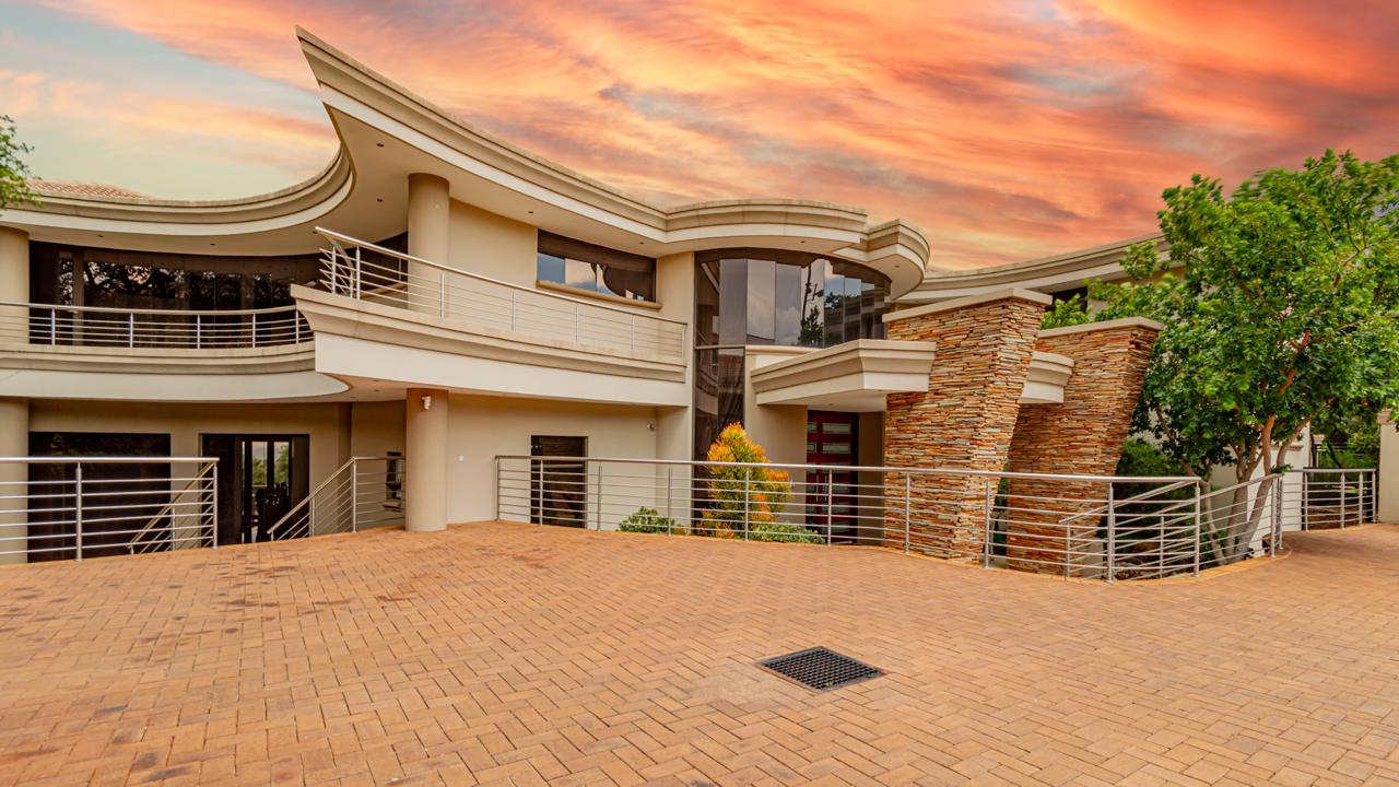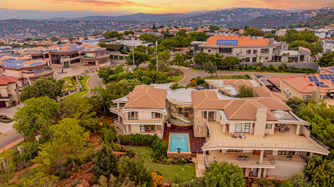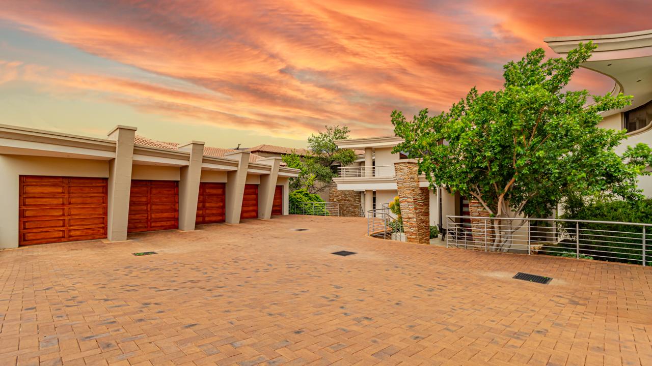 The property includes garaging for five vehicles with an additional side entrance for extra parking or further garaging. Two staff quarters add practicality as well as prepaid electricity and a server room for fully automation integration. All of this is situated within an eco-conscious estate renowned for its exceptional security, natural beauty, and tranquil environment.