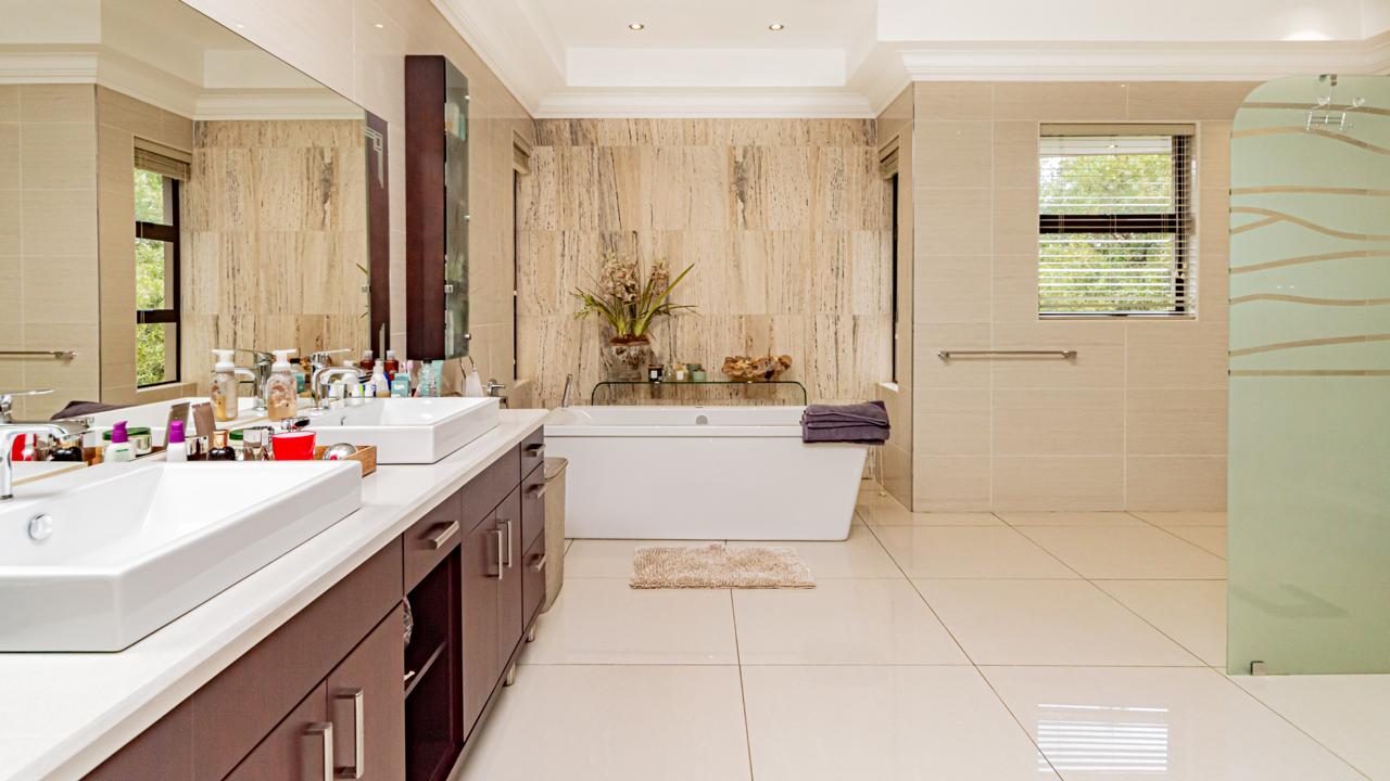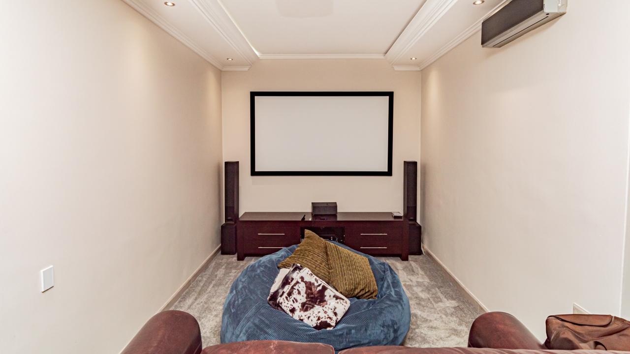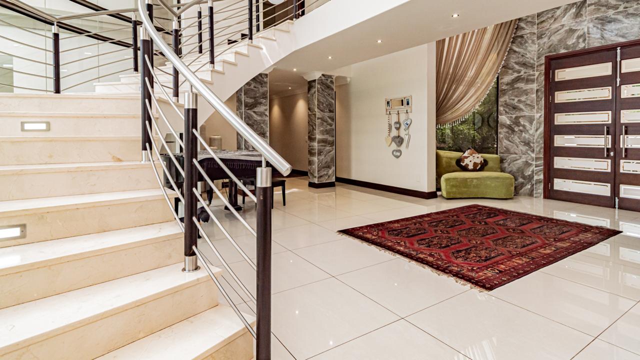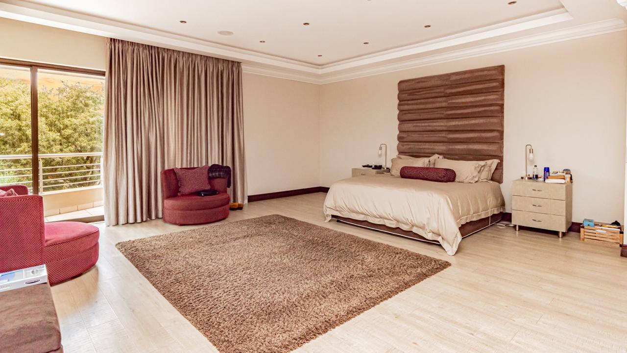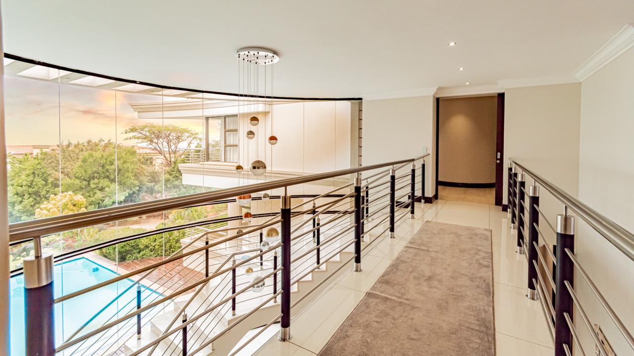 The property includes garaging for five vehicles with an additional side entrance for extra parking or further garaging. Two staff quarters add practicality as well as prepaid electricity and a server room for fully automation integration. All of this is situated within an eco-conscious estate renowned for its exceptional security, natural beauty, and tranquil environment.