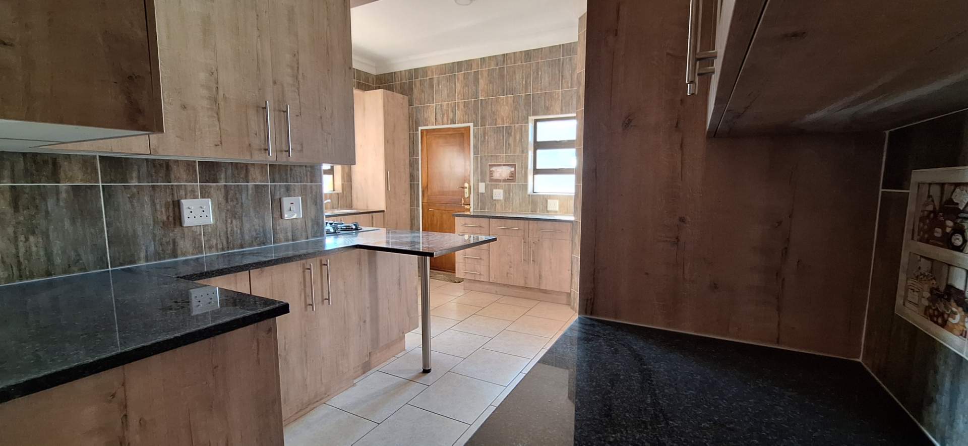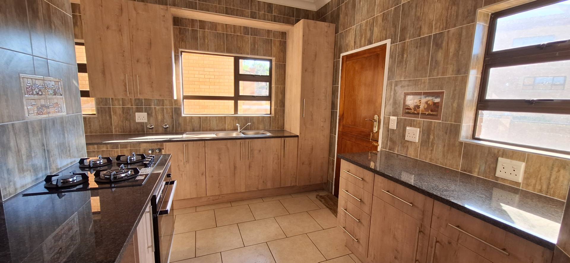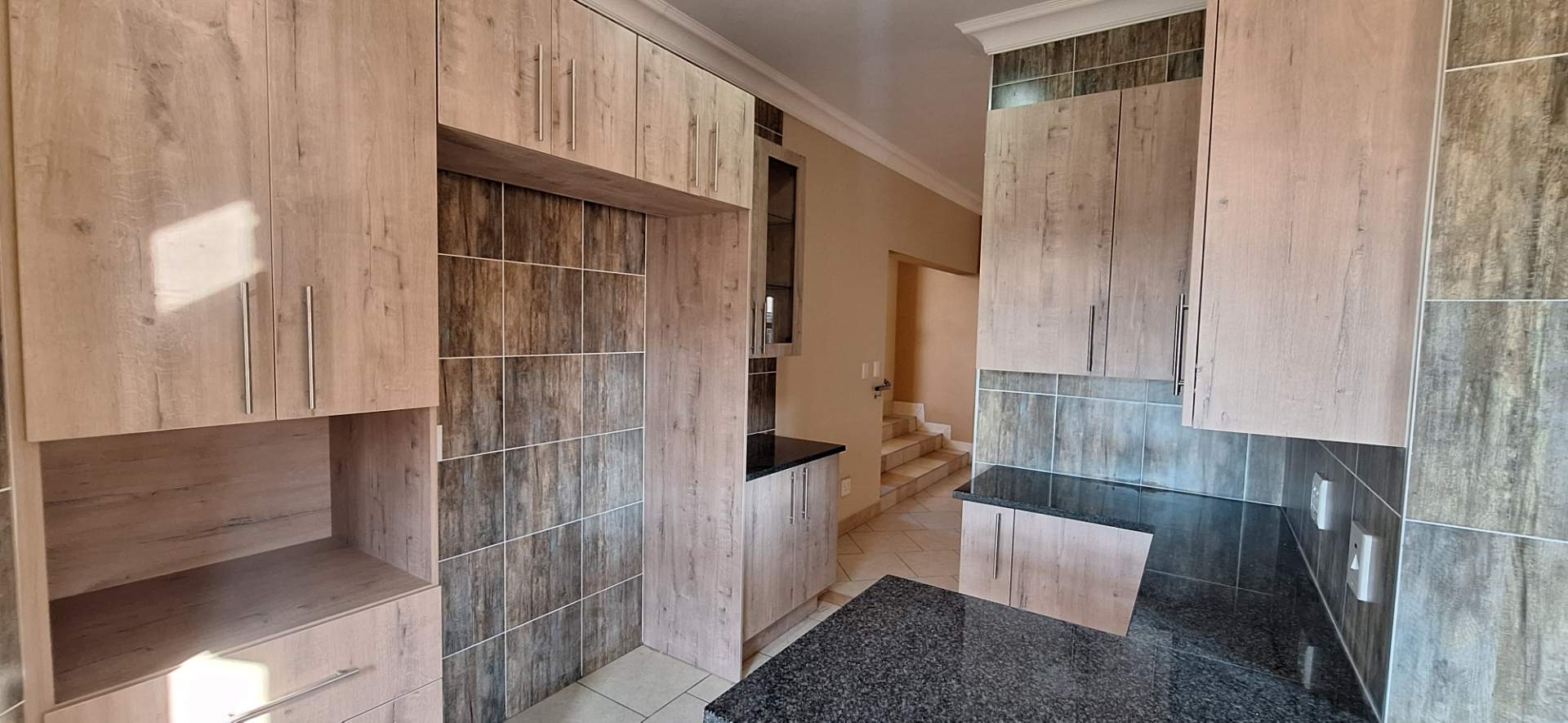 The heart of the home is the chef-style kitchen, equipped with elegant wooden cupboards and modern finishes. Granite countertops provide ample workspace, while a spacious pantry and scullery add functionality. Cooking enthusiasts will appreciate the gas stove paired with an electric oven, and there’s room for a double-door fridge to accommodate all your culinary needs.