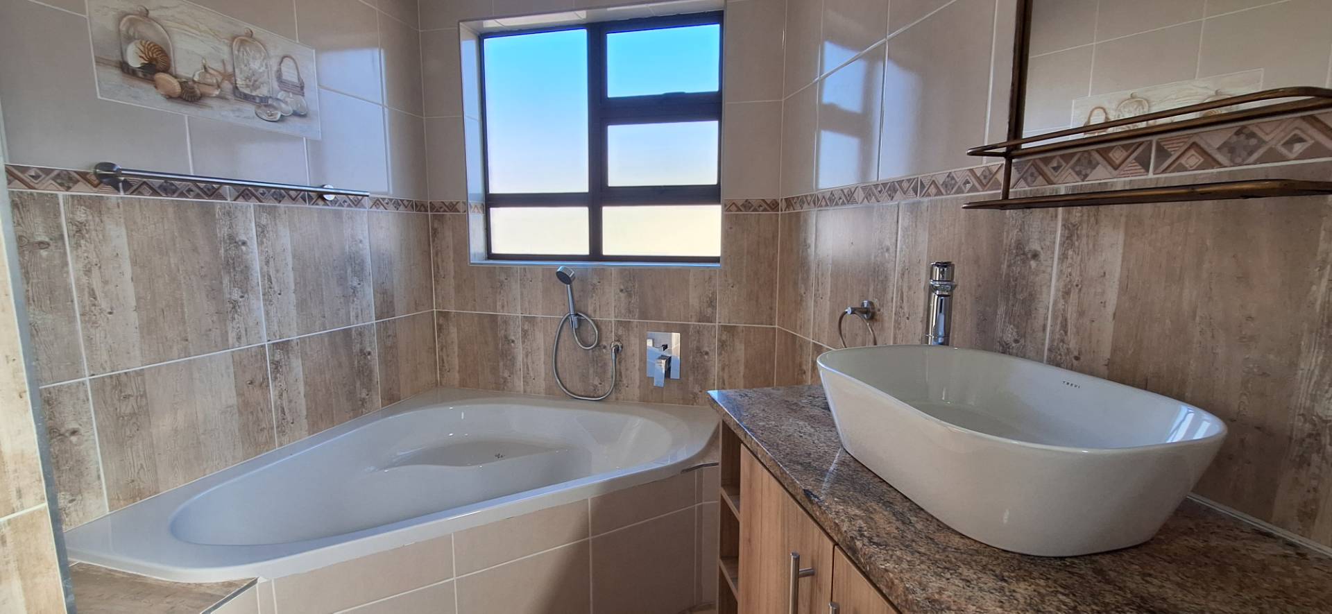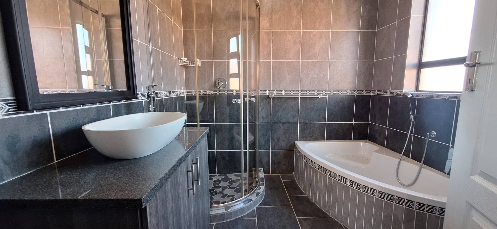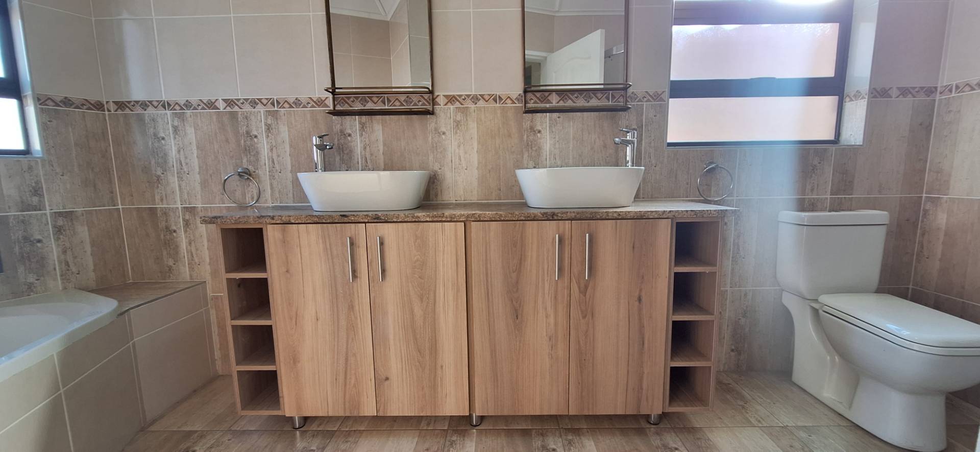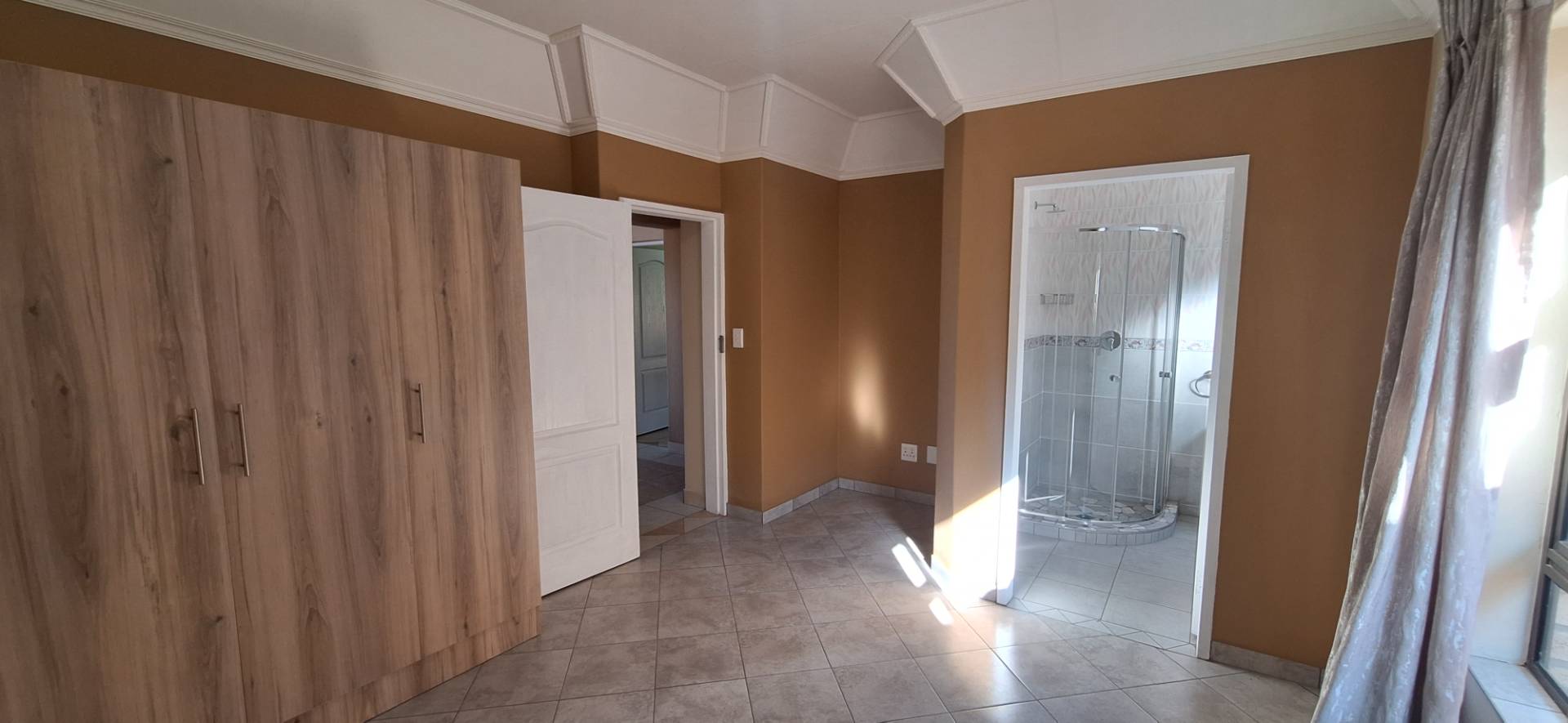 The heart of the home is the chef-style kitchen, equipped with elegant wooden cupboards and modern finishes. Granite countertops provide ample workspace, while a spacious pantry and scullery add functionality. Cooking enthusiasts will appreciate the gas stove paired with an electric oven, and there’s room for a double-door fridge to accommodate all your culinary needs.
