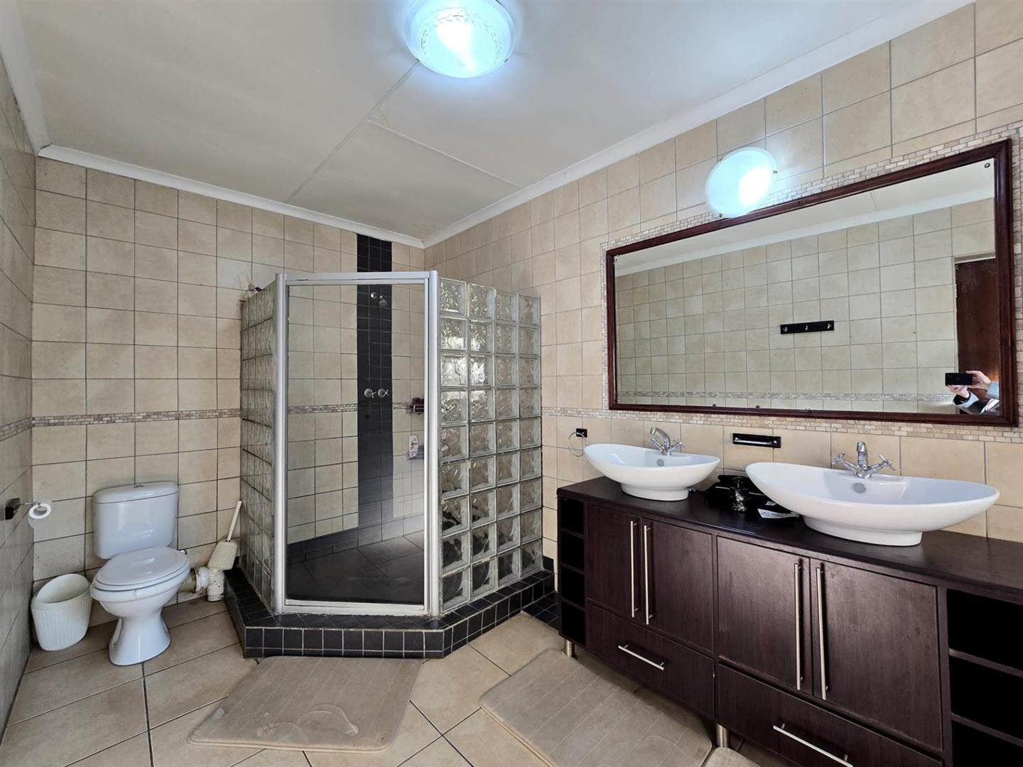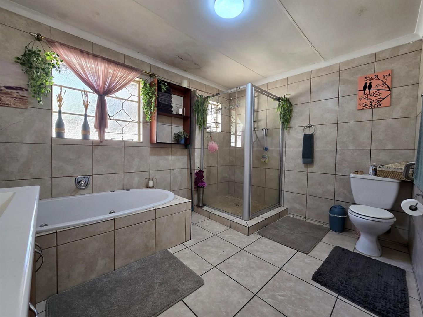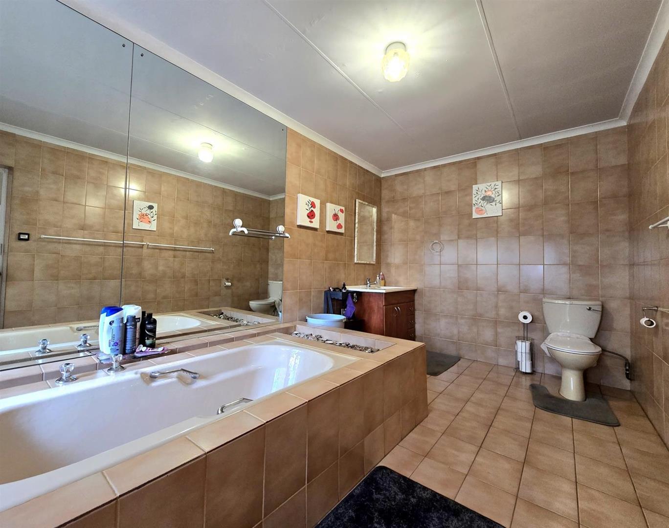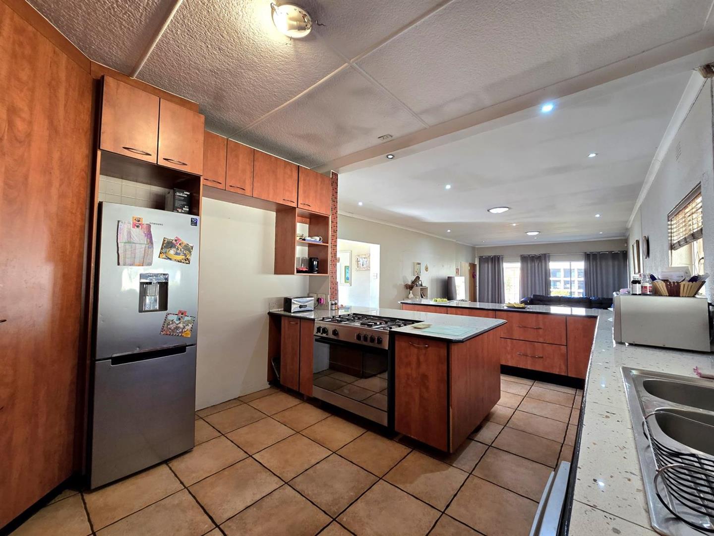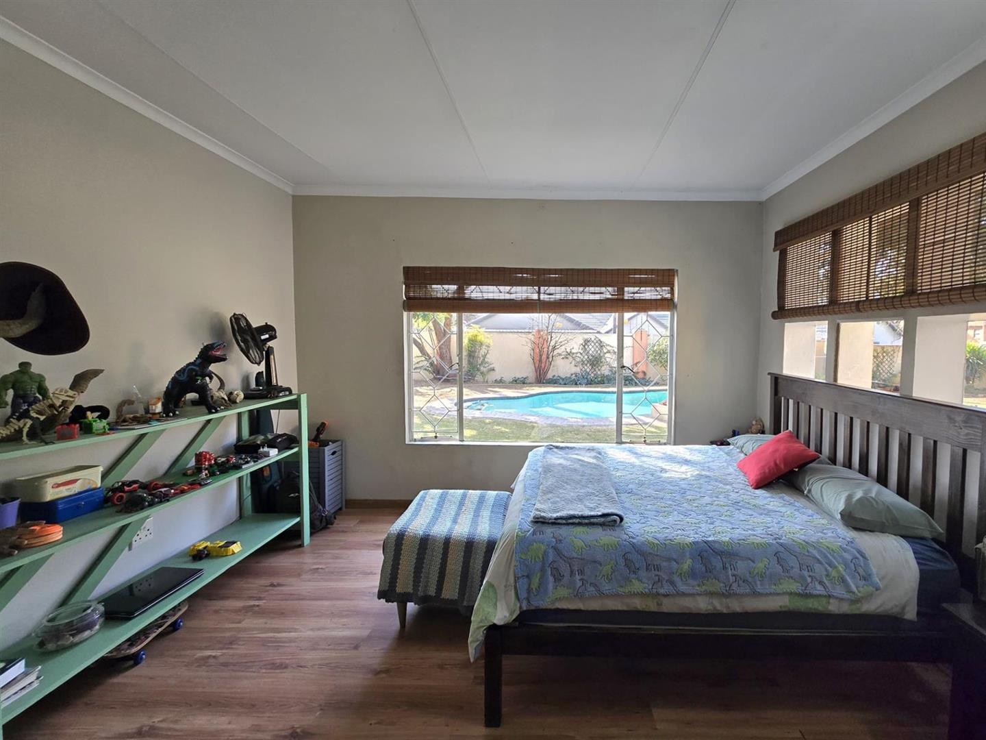 Step outside to discover a private oasis. The property features a sparkling swimming pool and an entertainment area complete with a built-in braai. The home is environmentally friendly, equipped with a solar system powered by 18 solar panels, significantly reducing energy costs.