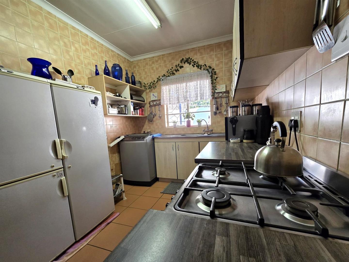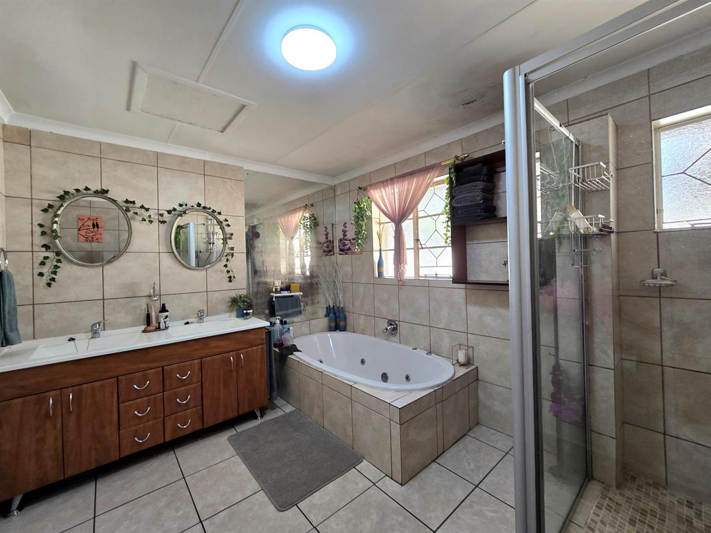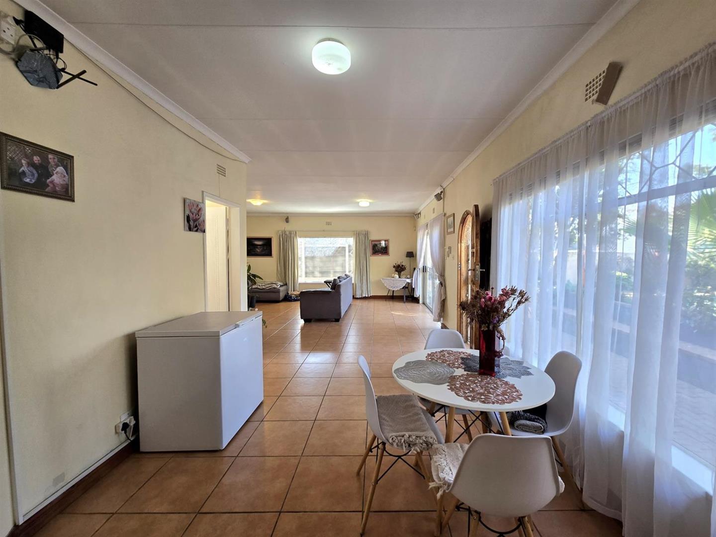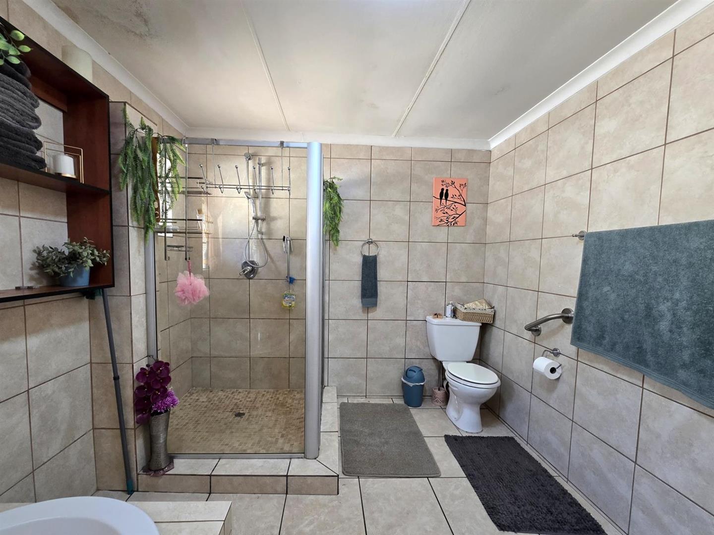 Step outside to discover a private oasis. The property features a sparkling swimming pool and an entertainment area complete with a built-in braai. The home is environmentally friendly, equipped with a solar system powered by 18 solar panels, significantly reducing energy costs.