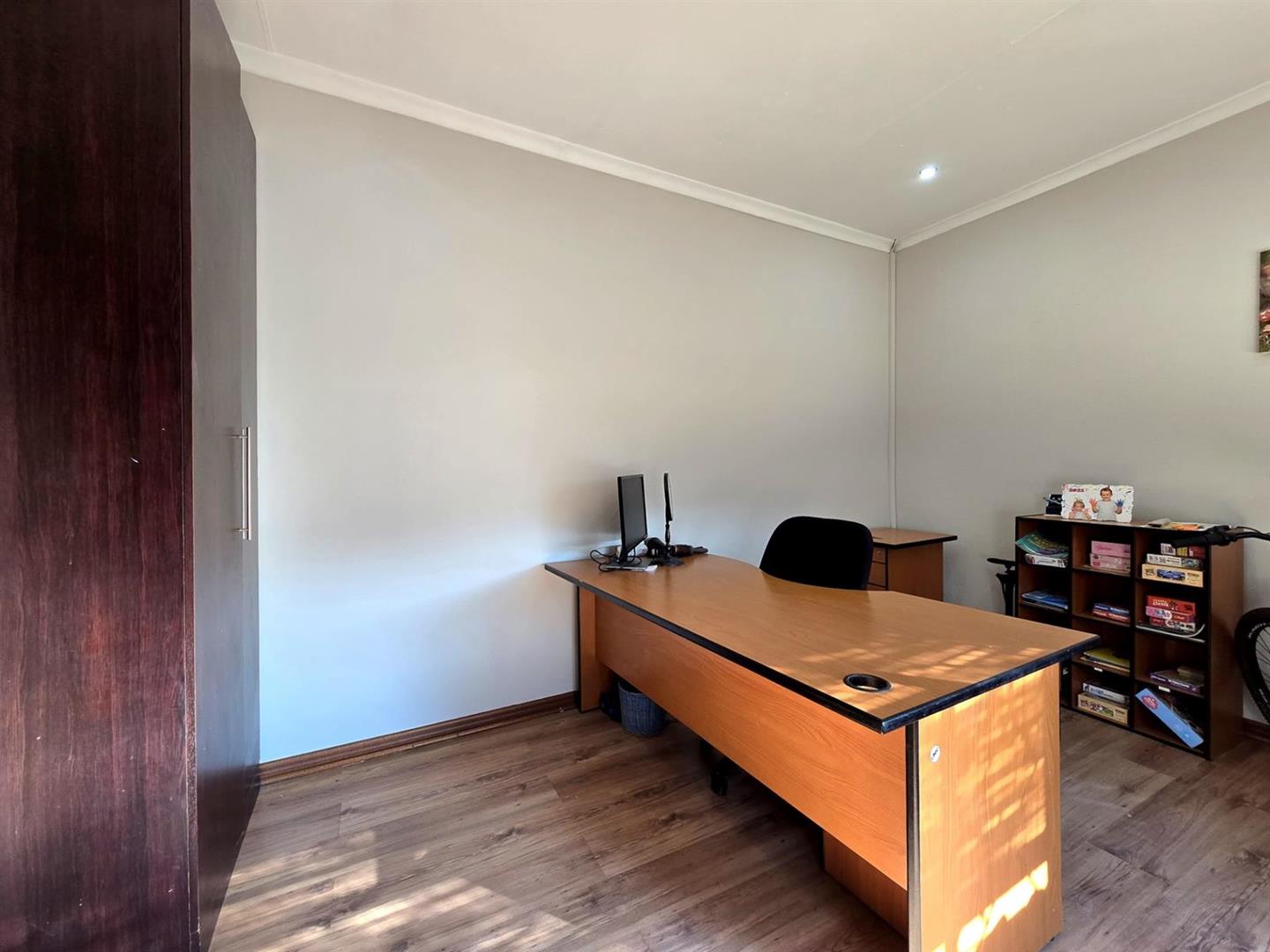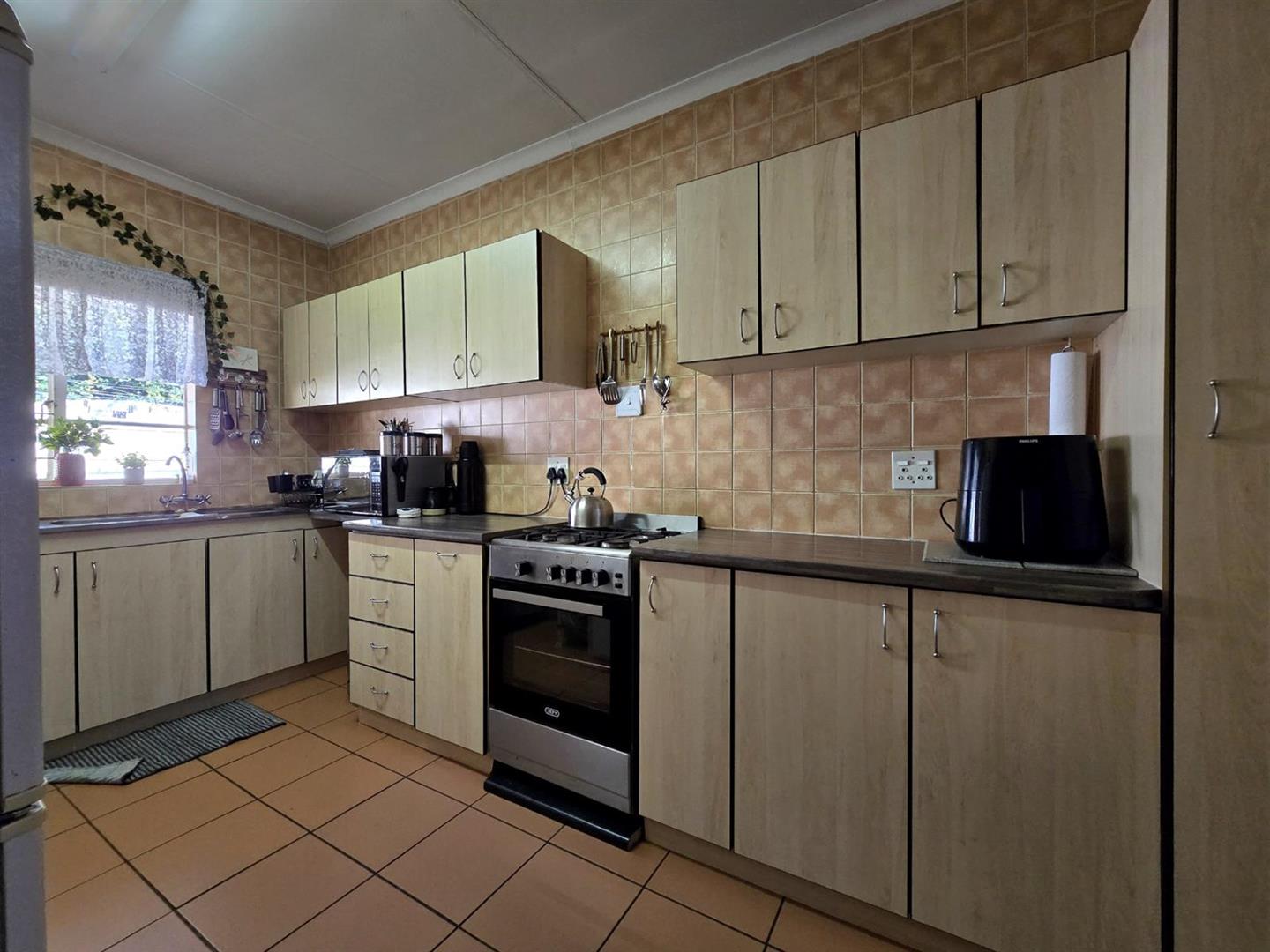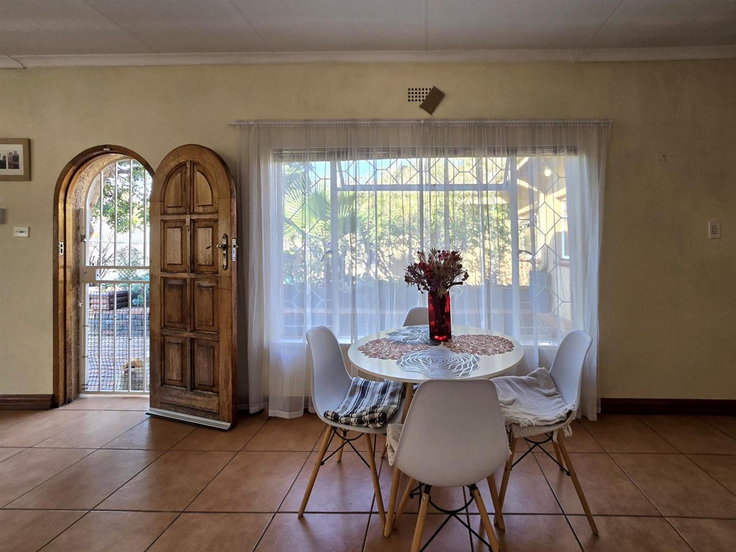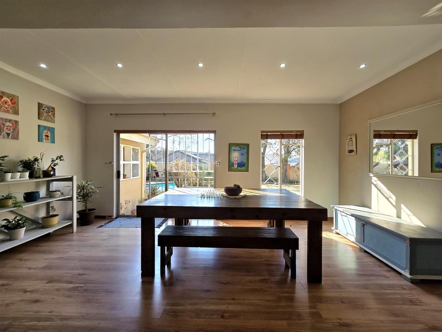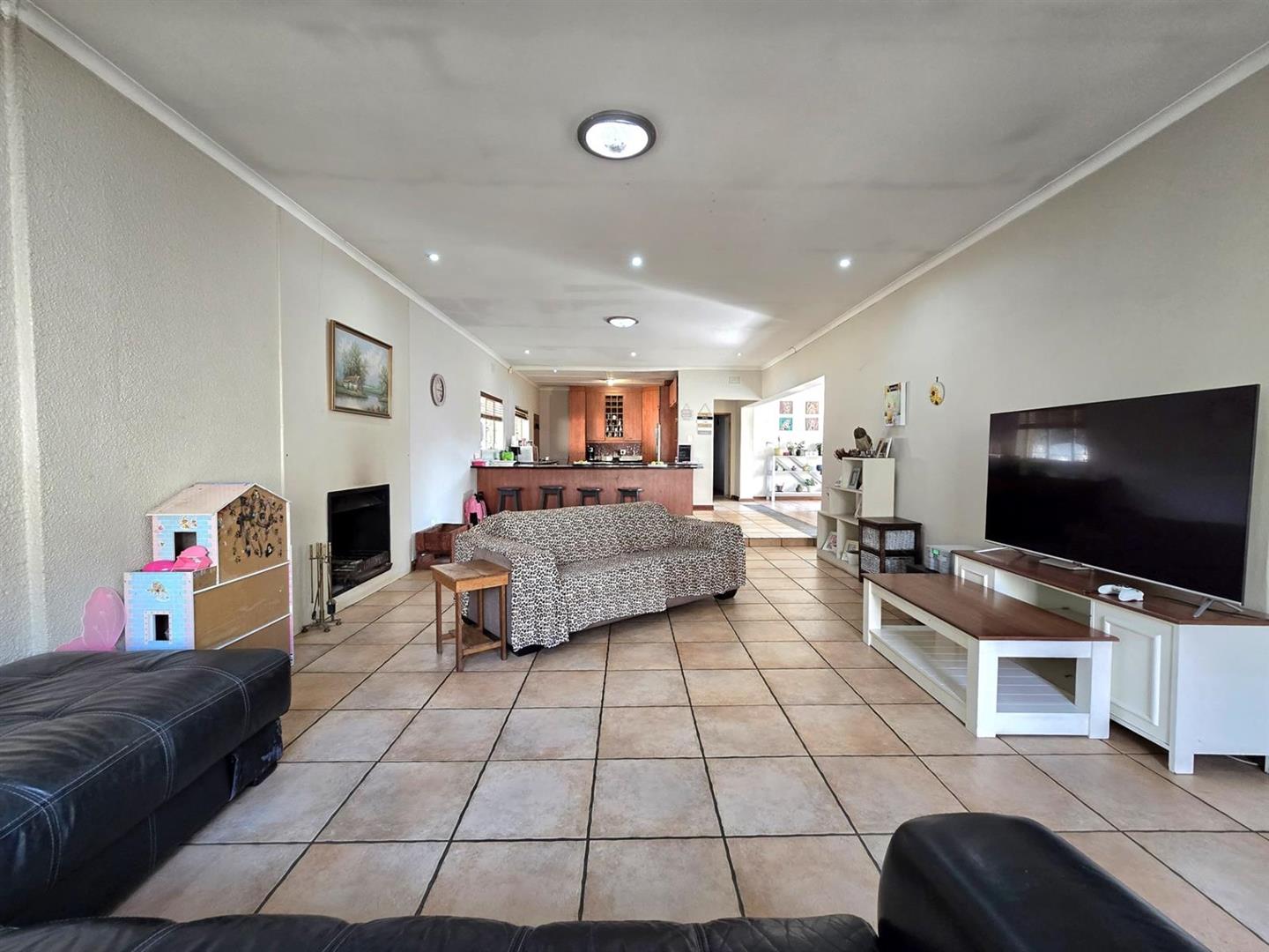 Step outside to discover a private oasis. The property features a sparkling swimming pool and an entertainment area complete with a built-in braai. The home is environmentally friendly, equipped with a solar system powered by 18 solar panels, significantly reducing energy costs.