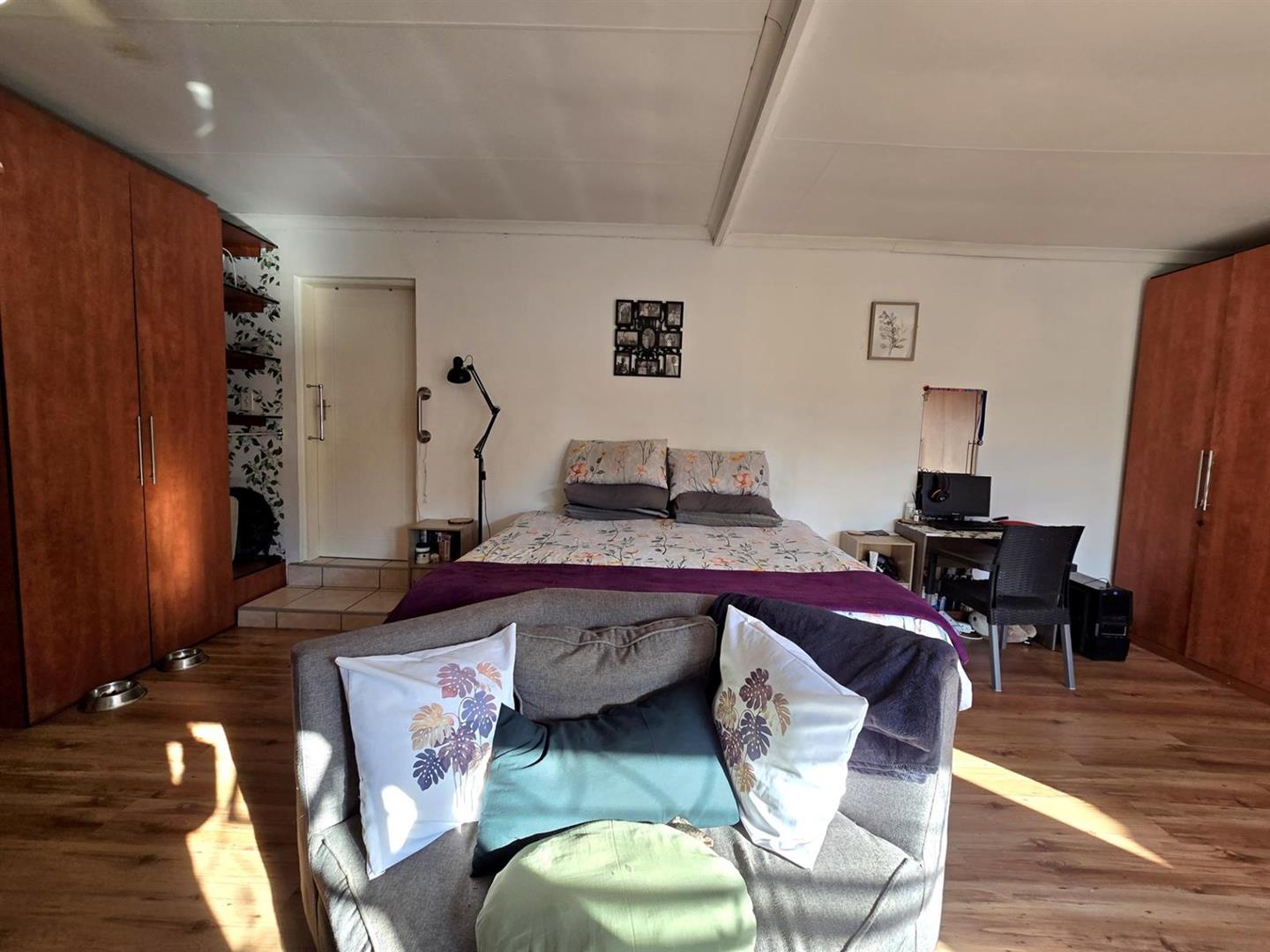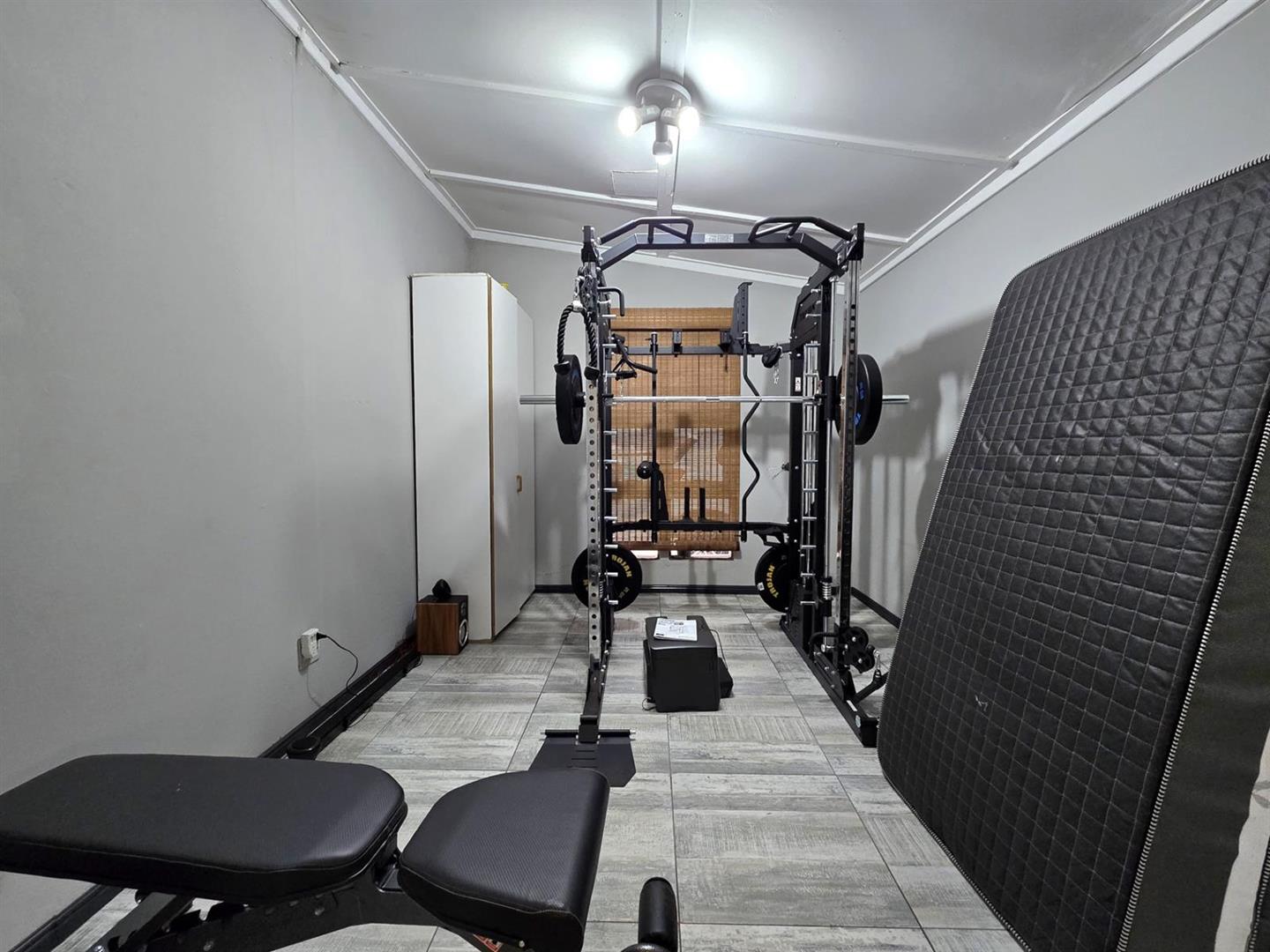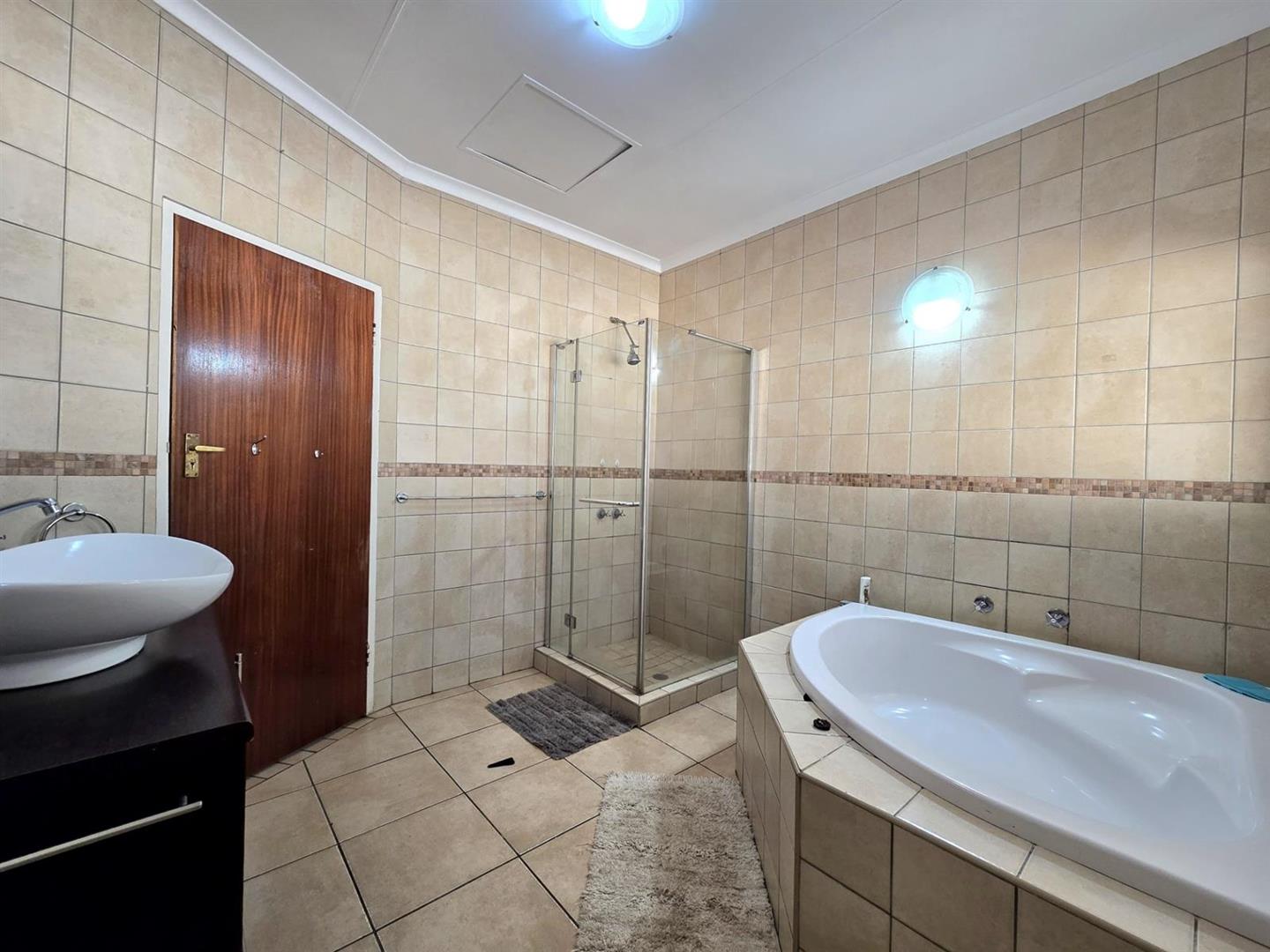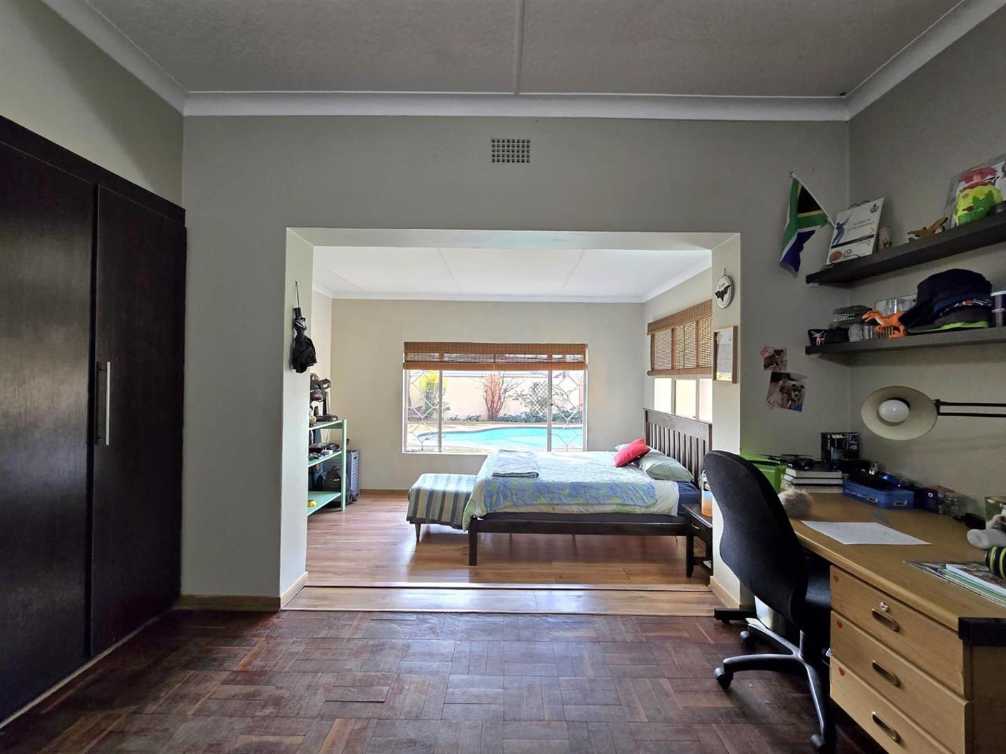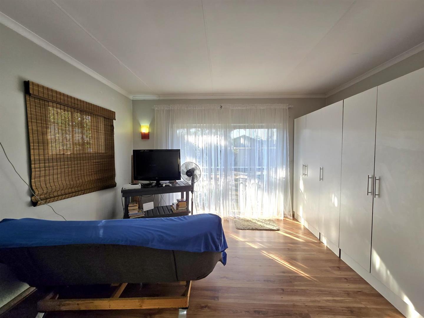 Step outside to discover a private oasis. The property features a sparkling swimming pool and an entertainment area complete with a built-in braai. The home is environmentally friendly, equipped with a solar system powered by 18 solar panels, significantly reducing energy costs.