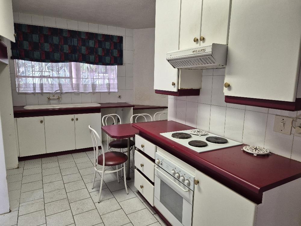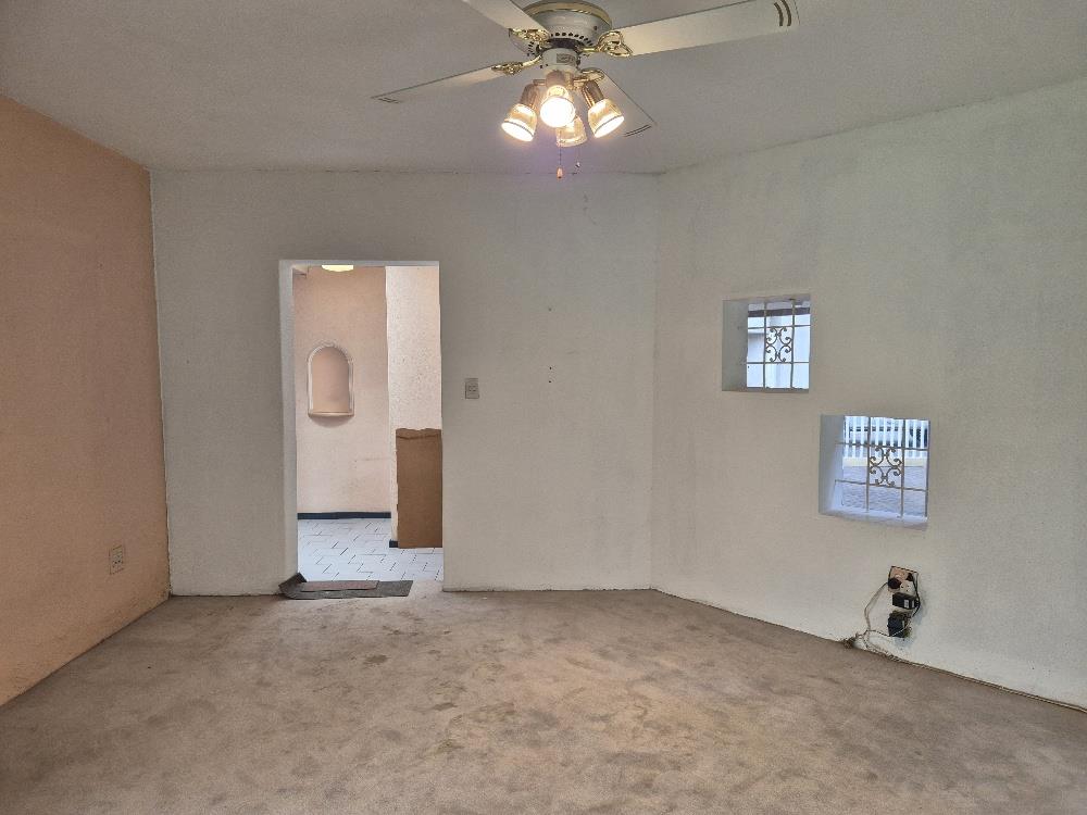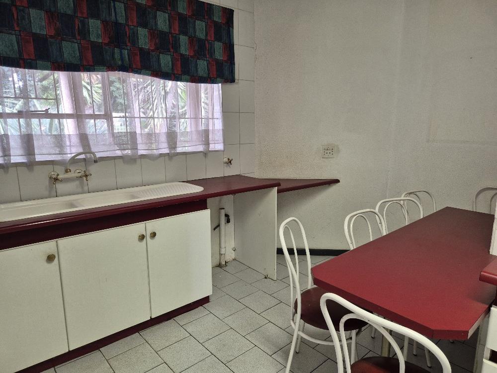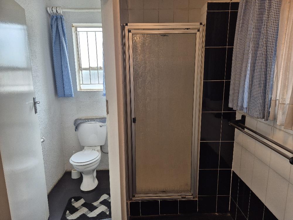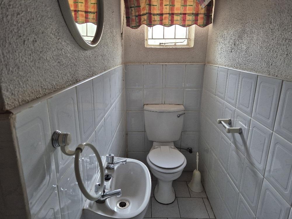 The well-appointed kitchen is a chef’s delight, featuring built-in cupboards, space for a double fridge, and a three-piece stove. Adjacent to the kitchen is a practical laundry room with a basin. The property also includes an outside room equipped with a bed, toilet, basin, and gas heater.