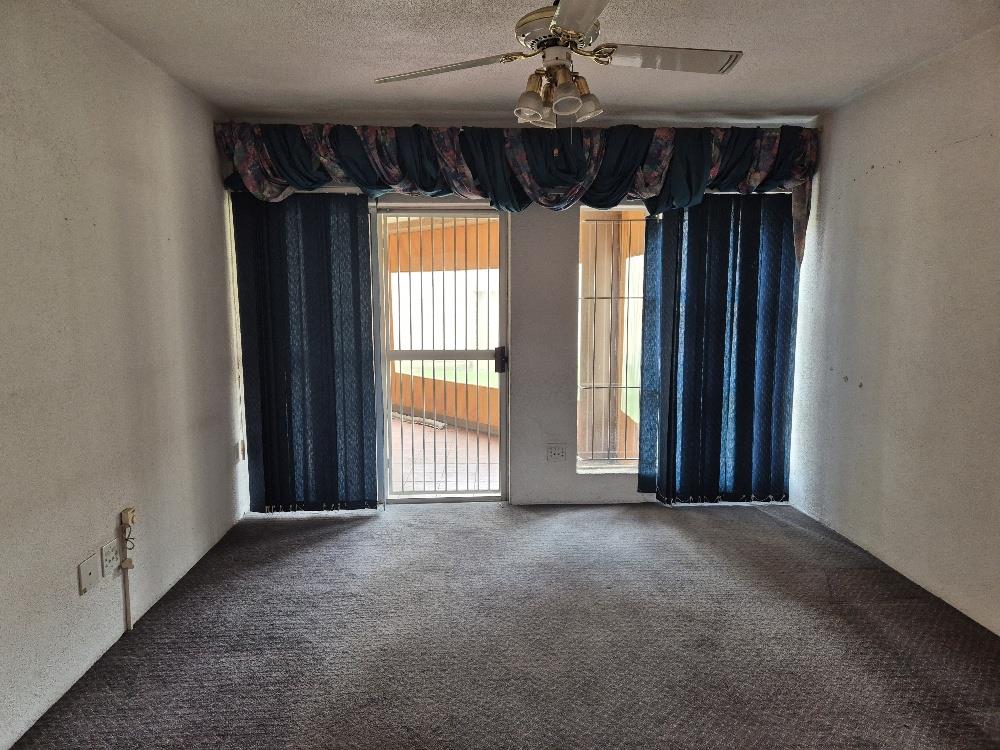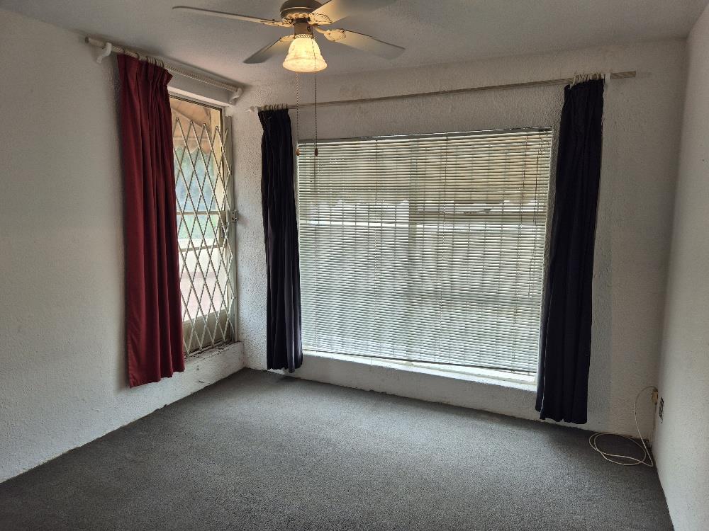 The heart of the home comprises a spacious lounge and dining room, both adorned with blinds and ceiling fans for comfort. The lounge has a sliding door that opens up to an enclosed (fold-up blinds) barbeque area, ideal for entertaining guests or enjoying family barbecues.
