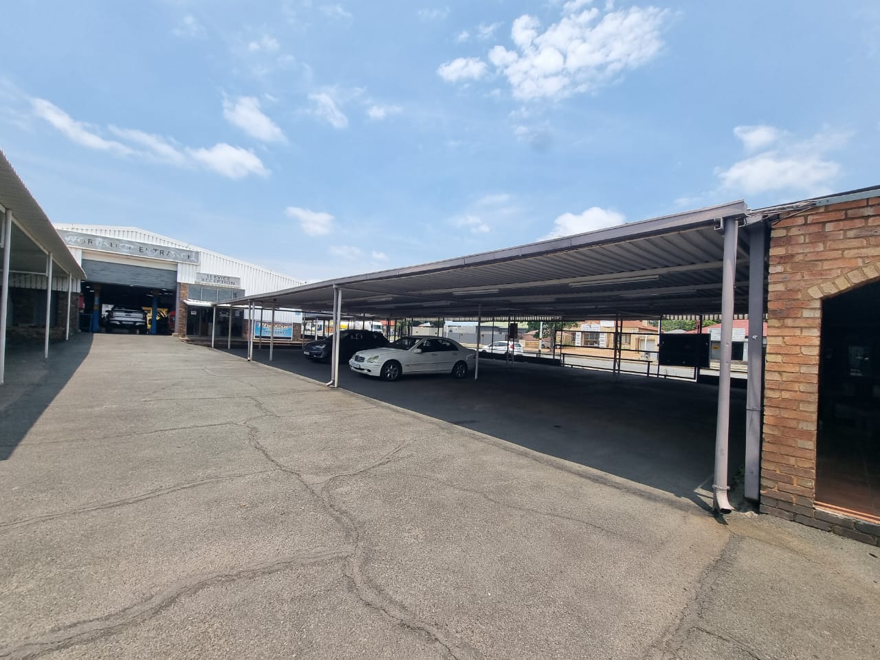 The ground floor features a spacious showroom, perfect for displaying products or services to the steady stream of passersby. The back section of the property is home to a massive warehouse, offering ample storage space or the opportunity for further business expansion. Additionally, several carports provide covered parking for up to 60 vehicles, accommodating both customer and staff needs.